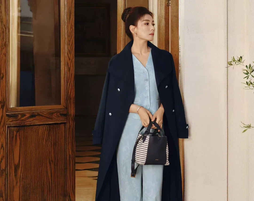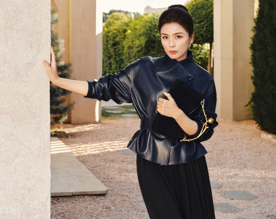 都市女强人风范,一身利落黑西装,剪裁挺括,线条冷艳。没有多余装饰,却自带锋芒气场