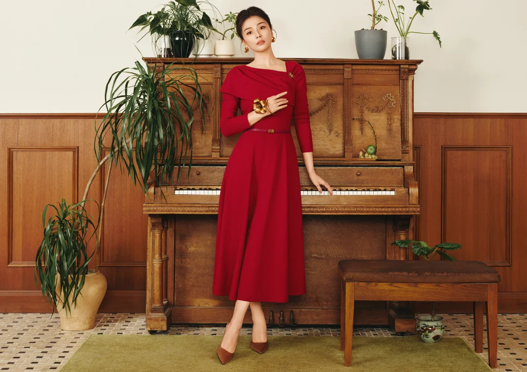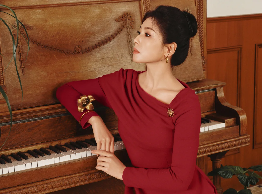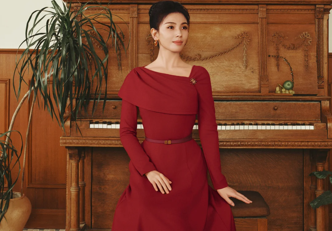大S在2005年,代言雅芳色彩全效唇膏时,状态真的好到发光,她穿着亮眼的红色连衣