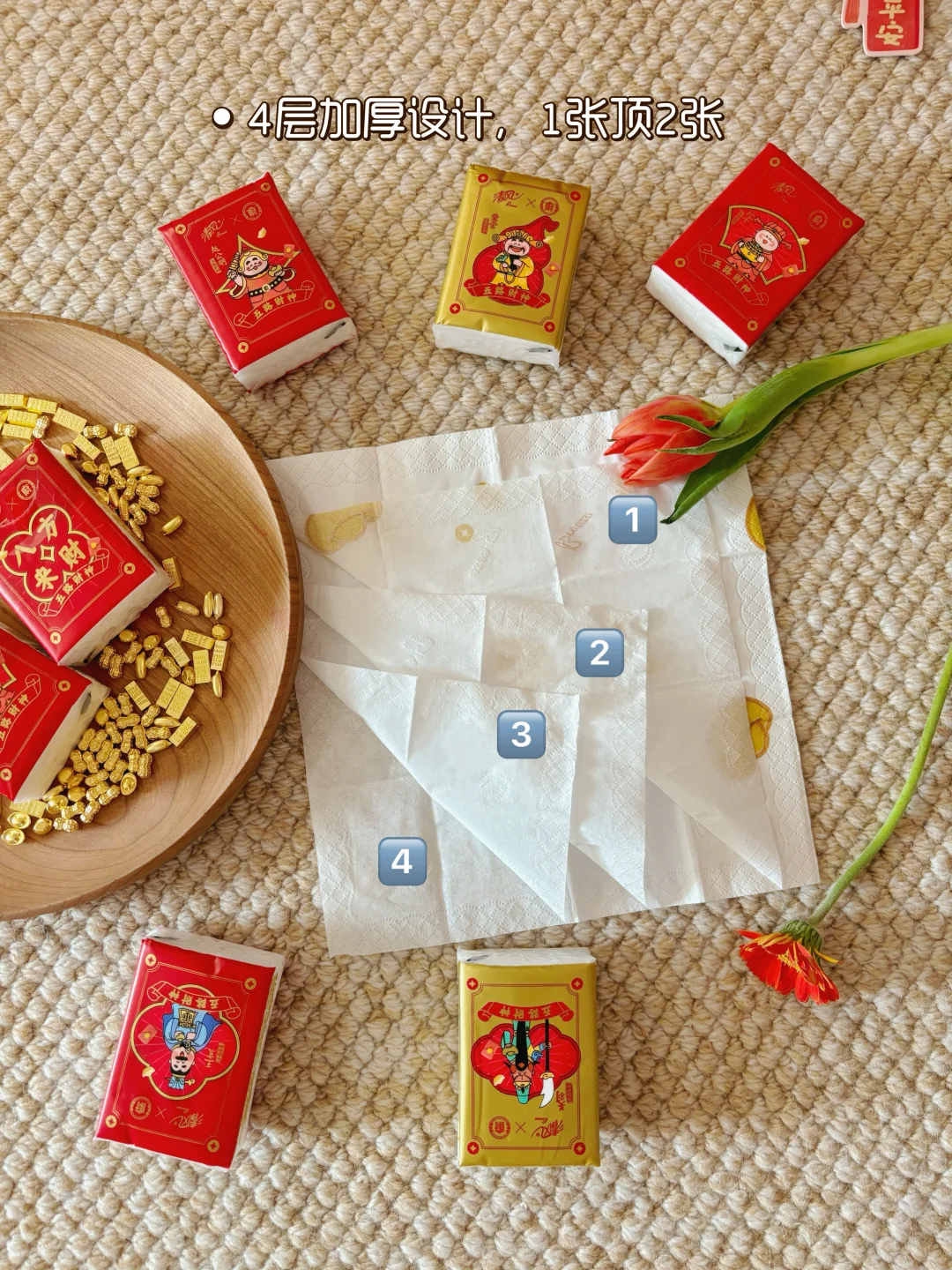 同款手帕纸居然还有金元宝纹样!揣一包在口袋文化祝福感十足~抽一张擦手都像接住财气满满的中华传统文化好彩头✨