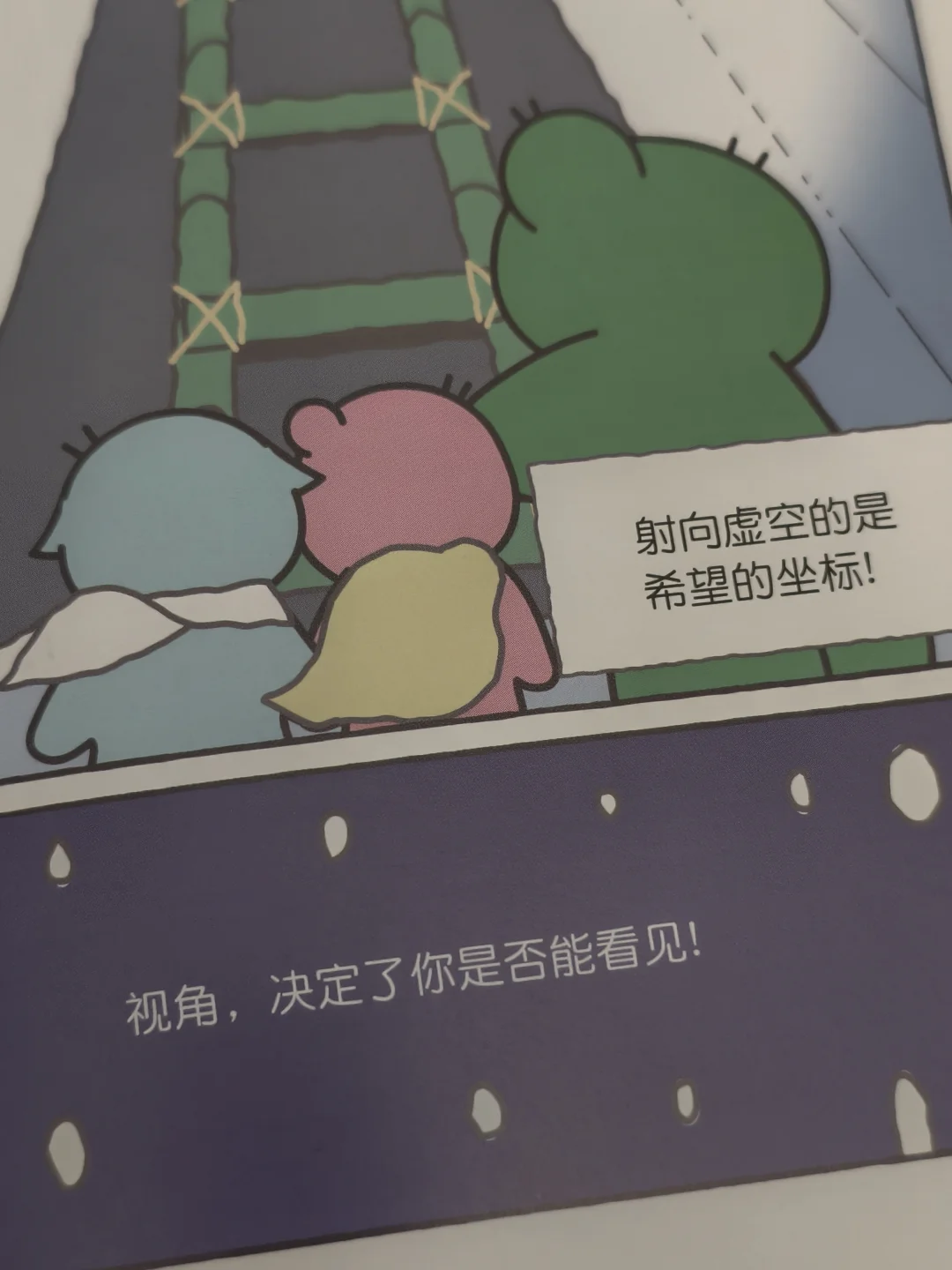 翻开这本书前,我以为它只是又一个治愈系绘本。直到看见可爱的纳米和希希,架着加高的梯子去努力看见心中的希望,我突然意识到,作者是在用童稚的笔触,解构成年人最隐秘的情绪困境。