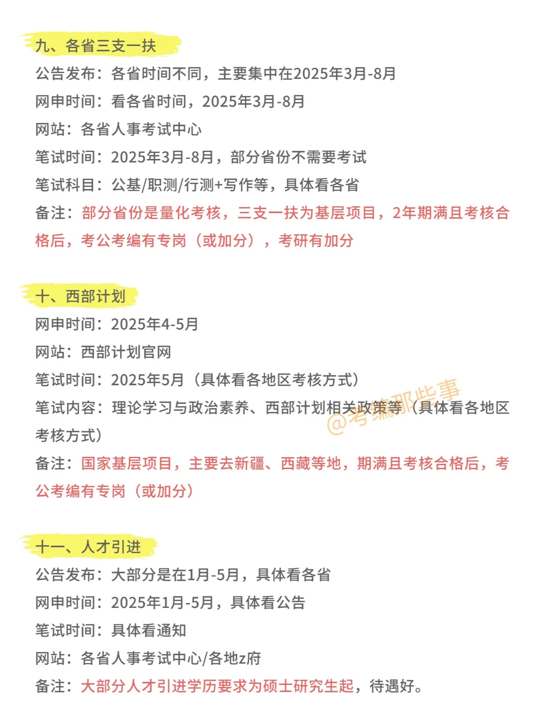 9、三支一扶:各省时间不同,主要集中在2025年3月-8月