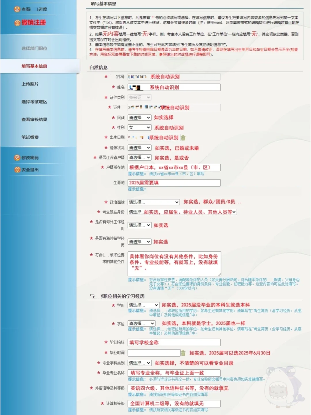 25江苏省考网申信息填写模板!不难的!