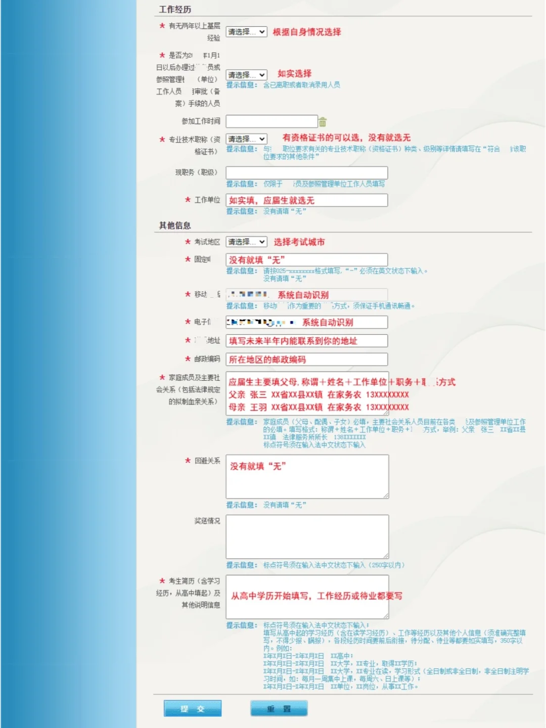 3、基本信.息项中如有涵盖不全的,可把此内容埴到"简历及其他说明信息”栏
