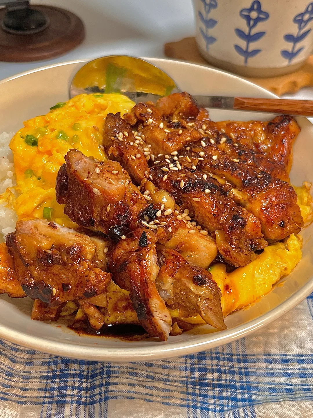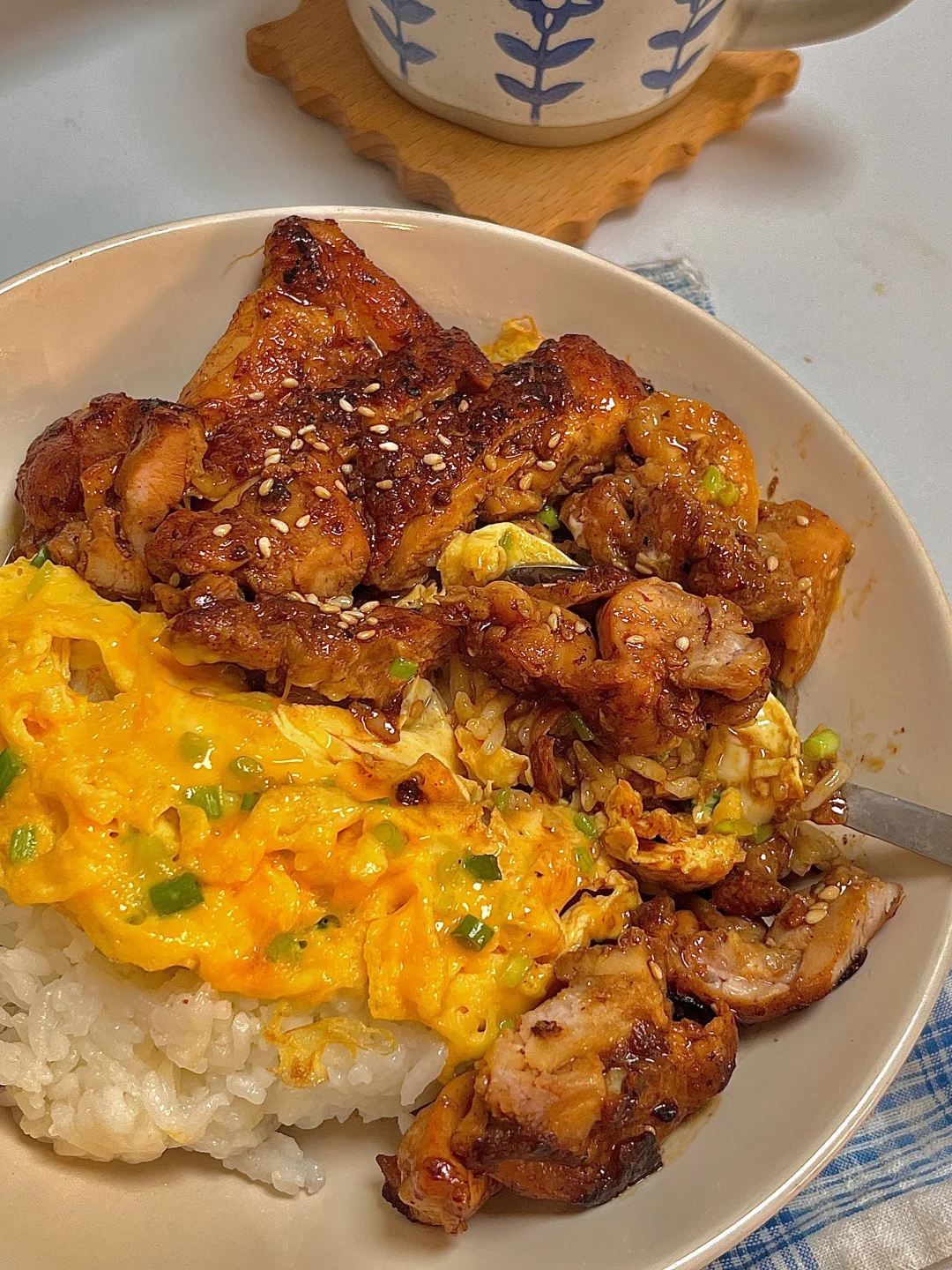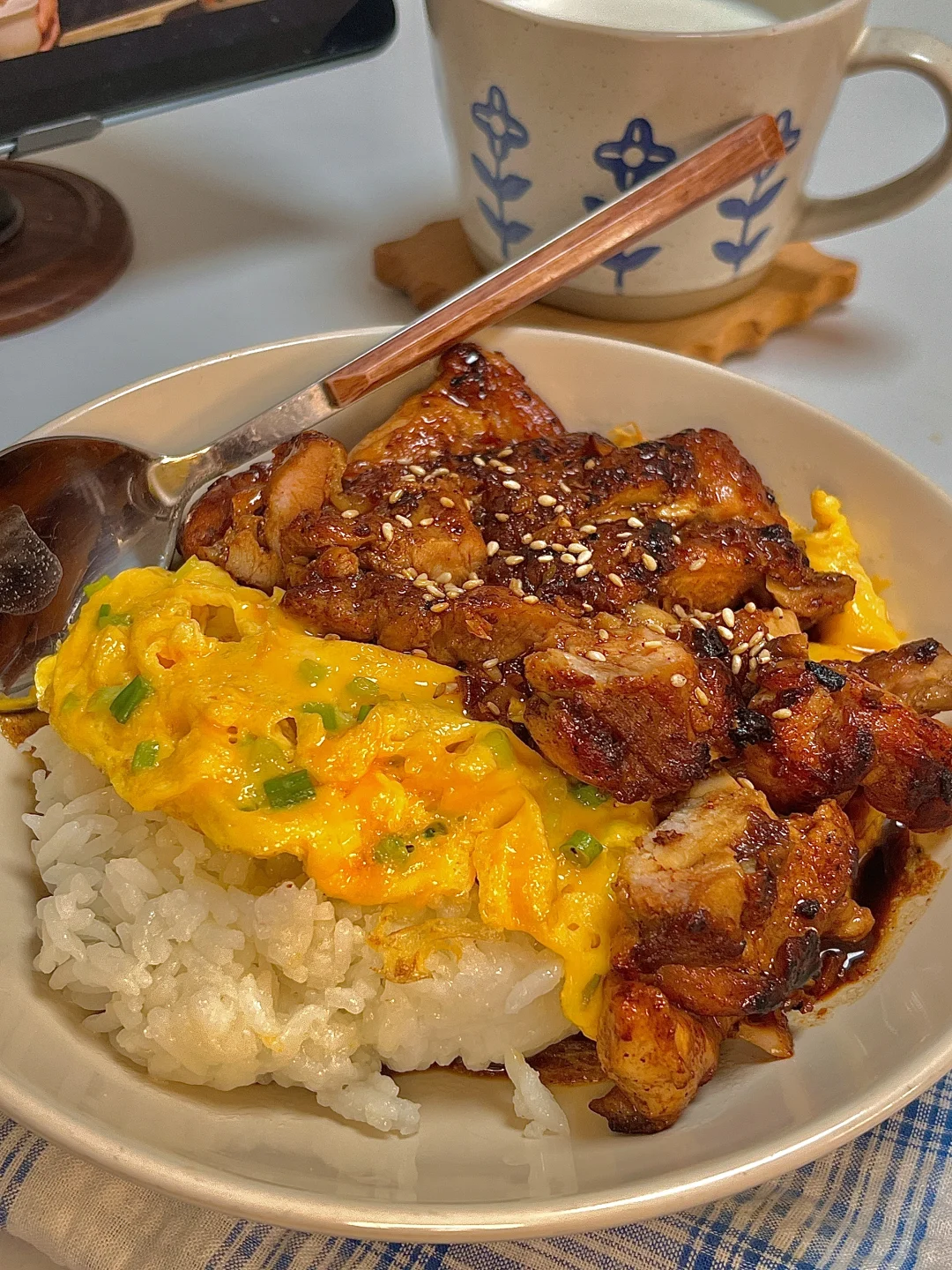 吃商开悟大赛 今日份一人食: 照烧鸡腿肉 滑蛋 牛奶 . 色香味俱全的照烧鸡腿滑蛋饭🍚谁吃了不迷糊呀!真巨好吃😋鸡腿肉入味又多汁,嫩嫩的滑蛋,浓郁的小酱汁拌米饭🍚一口大满足~ 爱吃的宝一定要去试试呀✌🏻