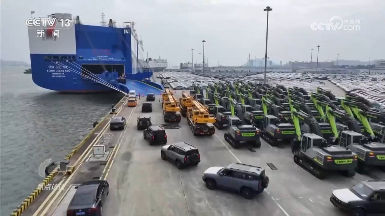 除了服务外贸的“硬支撑”在不断升级,“软环境”同样也在持续优化。广州港南沙汽车码头,一艘巨大的滚装船正在紧张作业。一辆辆驶向甲板的正是当前中国出口的“明星产品”——新能源汽车。