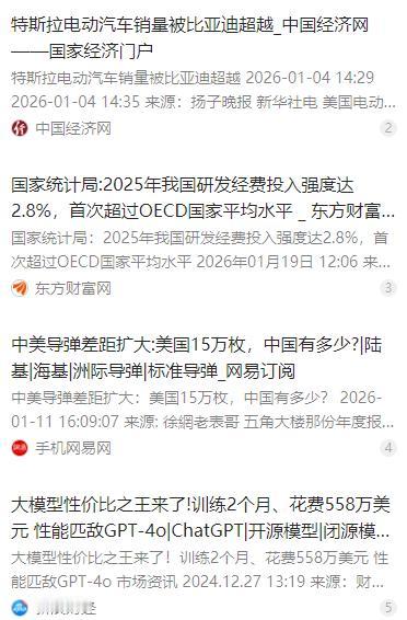 外国记者问,美国拥有的核弹头足以摧毁世界1000次,难道中国人一点也不害怕吗?对此,马斯克早已给出回答,中国并不是崛起,而是在回到本来属于自己的高度。自古以来,中国就是世界顶尖的强国,他们有很多聪明的人才,会做许多伟大的事情,DeepSeek只是一个开始……   麻烦看官老爷们右上角点击一下“关注”,既方便您进行讨论和分享,又能给您带来不一样的参与感,感谢您的支持!   在一场国际交流场合中,外国记者向中方抛出尖锐问题,称美国拥有约 3700 枚核弹头,核威慑力看似足以形成绝对压制,质疑中国人是否会因此心生畏惧。这个问题的背后,是部分西方势力对中国发展的固有偏见,而马斯克的一番话,恰好给出了最贴合的答案。   马斯克直言,中国并非是当下才开始崛起,而是在一步步回到本来就属于自己的高度。在他看来,中国从古至今从不缺少顶尖的人才,也一直有着创造伟大成就的能力,如今的 DeepSeek 只是中国科技发展的一个开端,未来还会有更多惊喜出现。   回望历史,中国早已是世界舞台上的顶尖强国,唐宋时期的中国经济繁荣,经济总量占全球 30% 以上,成为当时世界的经济中心。而在科技领域,张衡发明地动仪探索天地,祖冲之精准计算圆周率,无数先贤的智慧结晶,印证着这片土地从不缺优秀人才。   这些刻在骨子里的创新与探索精神,在当代中国依旧延续。南海区域的一次美方演练中,美国福特号航母参与其中,试图彰显军事力量。中方则凭借先进的电子战技术,对其实施电磁干扰,直接造成美方雷达和通信出现故障,让其军事行动难以推进。   后续在菲律宾黄岩岛附近的联合演习中,面对外部势力的侦察试探,中方再次运用成熟的电磁压制技术,精准压制对方侦察信号,成功打破其信息获取企图,用实际行动维护了区域的和平与稳定,也展现出中国国防力量的硬实力。   这种实力的背后,是中国在各领域的全面发展,AI 领域的突破就是最好的证明。DeepSeek 公司推出的开源 MoE 模型 DeepSeek-V3,拥有 6710 亿的超大参数,正式训练成本仅约 558 万美元,远低于国际同行的研发投入。   这款模型的性能更是比肩 GPT-4o,在数学等多项基准测试中表现亮眼,推理能力甚至超过 OpenAI 的 o1 模型,其 API 调用成本也大幅低于同类产品。DeepSeek 的成功,并非单纯的资金堆砌,而是中国工程师在算法、硬件上的精准优化。   当高端芯片出口受到限制,DeepSeek 团队另辟蹊径,将国产 NPU 的效能发挥到极致,用巧思破解技术壁垒。这就像古代先贤用活字印刷提升传播效率,当代中国科技工作者依旧擅长在资源限制中找到破局之路,这是独属于中国的发展智慧。   不止是 AI 领域,中国在新能源、通信等多个领域都已经建立起显著优势。在新能源赛道,中国太阳能装机容量占全球 60%,光伏产业的技术和产能均处于世界领先,成为全球绿色发展的重要推动者。   新能源汽车领域同样成绩斐然,2025 年比亚迪全球电动汽车销量达到 226 万辆,同比增长 28%,而特斯拉同期交付量仅 163.6 万辆,比亚迪首次实现对特斯拉的销量反超,中国新能源汽车品牌也在海外市场不断收获认可。   通信领域的发展更是有目共睹,截至 2026 年初,中国建成的 5G 基站数量达到 483.8 万座,实现全国所有乡镇和 95% 行政村的 5G 覆盖,5G-A 网络也已覆盖超 330 个城市,为数字经济发展筑牢了通信基础。   这些成就的取得,离不开中国对科技研发的持续投入。2025 年中国研发经费投入强度达到 2.8%,首次超过 OECD 国家平均水平,全社会研发经费投入超 3.9 万亿元,多年稳居世界第二位,为科技发展提供了充足的资金支持。   科研投入的持续加码,也结出了丰硕果实。中国成为全球首个国内有效发明专利拥有量超 500 万件的国家,PCT 国际专利申请量连续 6 年位居全球第一,关键核心技术领域的高价值专利储备不断丰富。   从古代的四大发明到如今的 AI 大模型、5G 技术、新能源产业,中国的发展从来都不是一蹴而就的爆发,而是文明智慧的代代传承。马斯克的判断,正是看到了中国发展的本质:不是追赶,而是回归。   面对核威慑的提问,中国的底气从来都不是来自于畏惧,而是来自于千百年的文化积淀,来自于当代在科技、经济、国防等各领域的硬实力。DeepSeek 的突破,南海维权的坚定,新能源与通信的领先,都是这份底气的具体体现。   如今的中国,正以脚踏实地的创新,在各个领域不断突破。那些曾经的技术壁垒,都在一步步被攻克;那些西方势力的固有偏见,也在被一个个中国成就打破。正如马斯克所说,DeepSeek 只是一个开始,未来的中国,还会在更多领域绽放光彩,回到属于自己的高度。