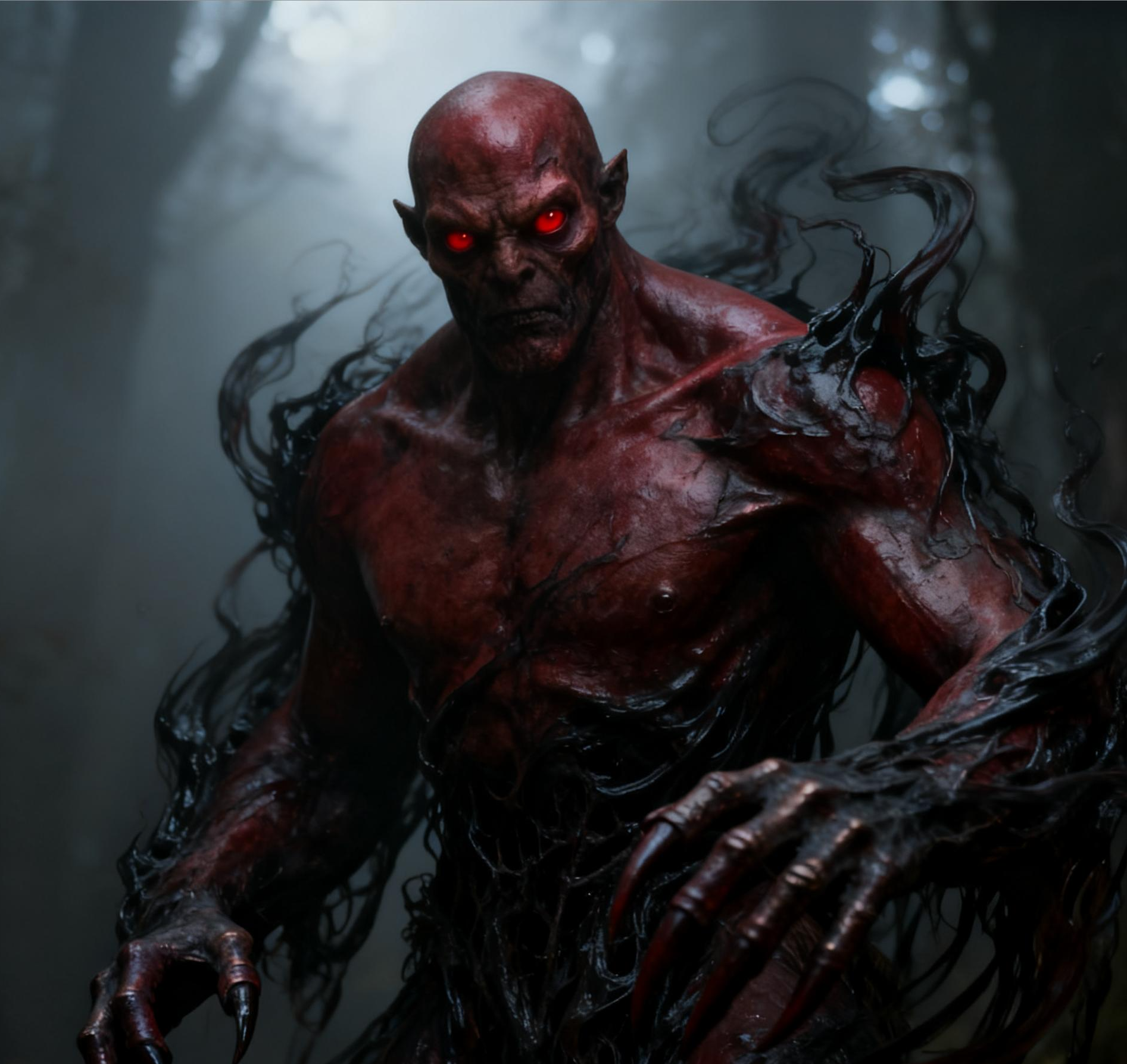 外形细节:皮肤变成深黑色,像烤焦的木炭,摸上去硬邦邦的;指甲完全变黑变尖,有一寸多长,能划破树皮;身上会散发出淡淡的腐臭味,但不重,因为尸身开始变得 “结实”。