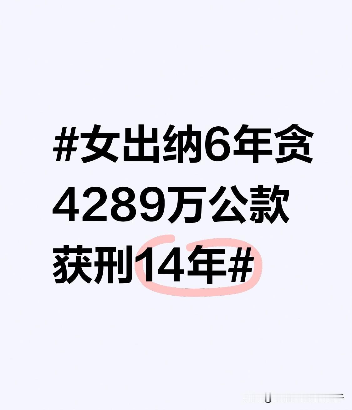 女出纳6年贪4289万公款获刑14年 央视披露的这起“小官巨贪”案太惊人了!某事业单位女出纳覃某,6年贪了4289万公款。349笔转账,这么多钱就悄无声息地没了。她用这些钱豪掷数百万全身整形,买了9辆豪车、千万房产与商铺,还给“大师”700万“消灾”,挪用公款当“投资分红”送人。 最终她被判14年加300万罚金。这女的野心大、贪污数目巨、用途广,真让人咋舌。以前男性腐败案例多,女性这么巨额贪污还挺少见。这也反映出公司和上级部门监管不力,6年都没发现问题。权力得用对地方,别成了中饱私囊的工具,反腐倡廉还得加大力度啊。