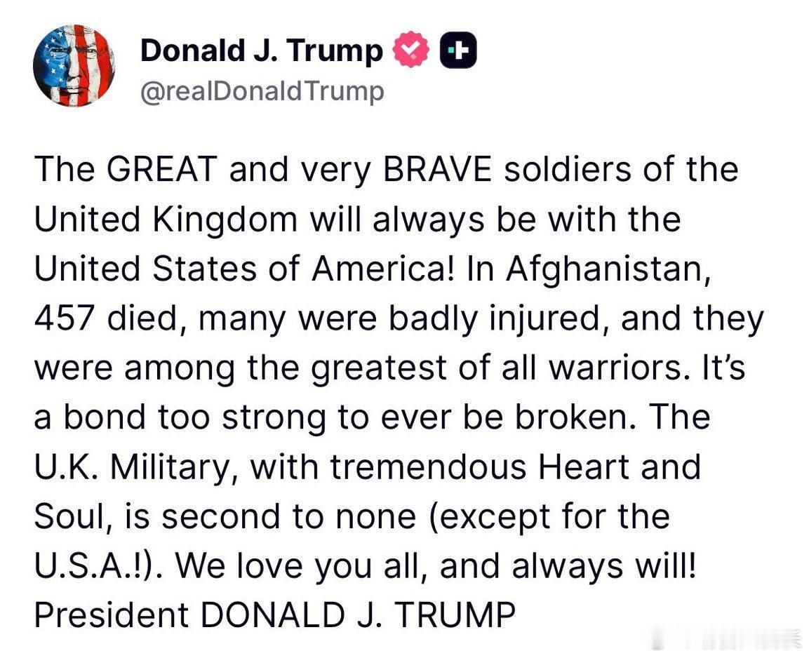面对英国的抗议,北约的崩溃,川普秒跪!特朗普部分收回了他关于北约盟国不会与美国并肩作战的言论:“英国伟大而勇敢的士兵将永远与美利坚合众国站在一起! 在阿富汗,457名英国士兵阵亡,许多人身负重伤,他们是最伟大的战士之一。 这种情谊牢不可破。 英国军队拥有无比的勇气和精神,是无与伦比的(除了美国! )。 我们爱你们所有人,并将永远爱你们! ”海外新鲜事热点观点