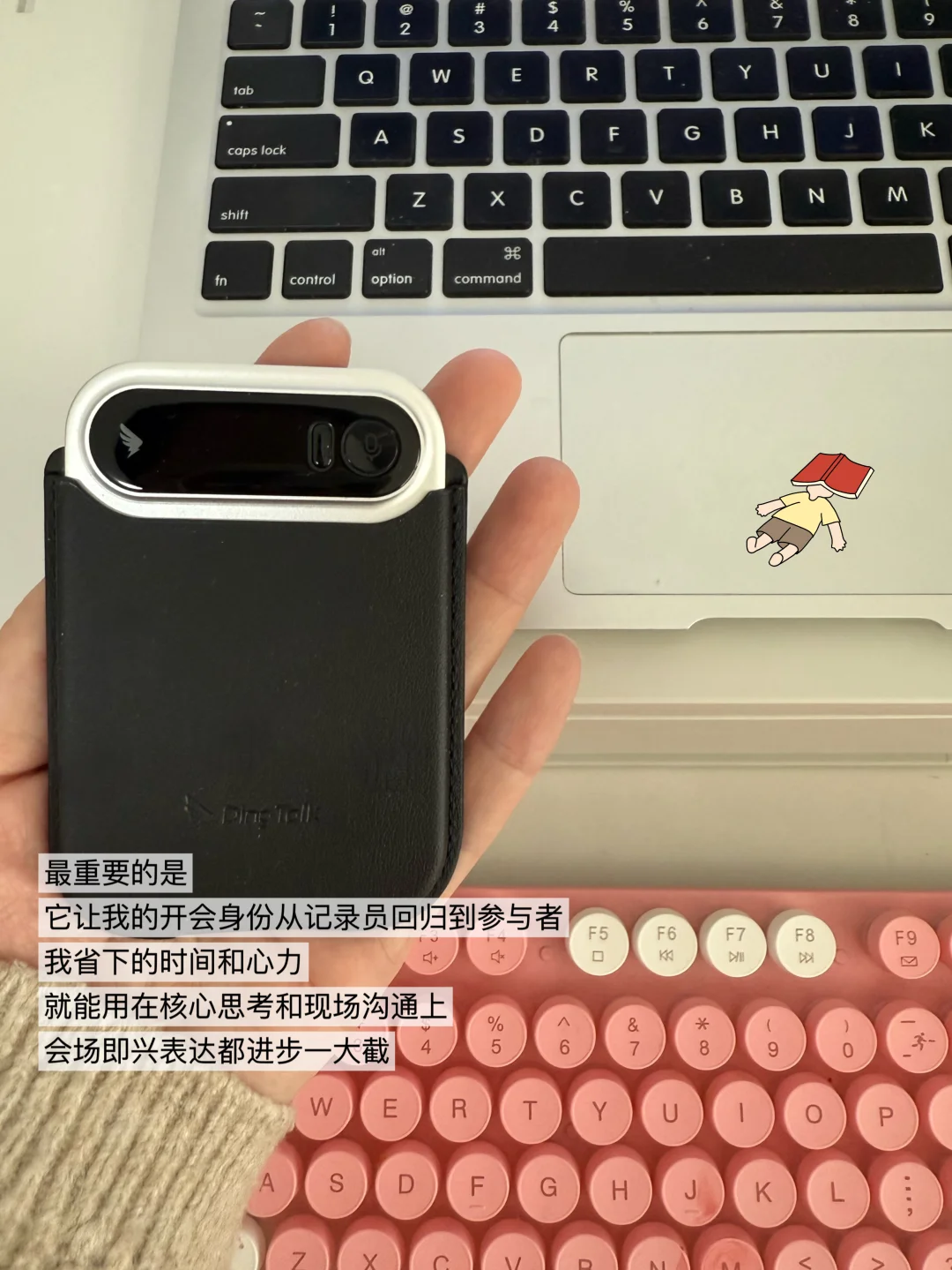 最近风很大的钉钉AI录音卡我就是跟着她们入的。以前开会既要聚精会神听重点,又要分神记笔记,人多嘴杂总漏关键信息。会后做纪要又耗一两小时,零散发言整合成材料很头疼。现在有钉钉录音卡就像有贴手机背后的隐形助手。不仅帮我把会议内容全程录音,且自动标记不同发言人,哪怕坐后排门口,收音也很清晰。以前以为钉钉只是打卡考勤的办公平台,原来人家的AI听转协同也这么出色,借力很重要!