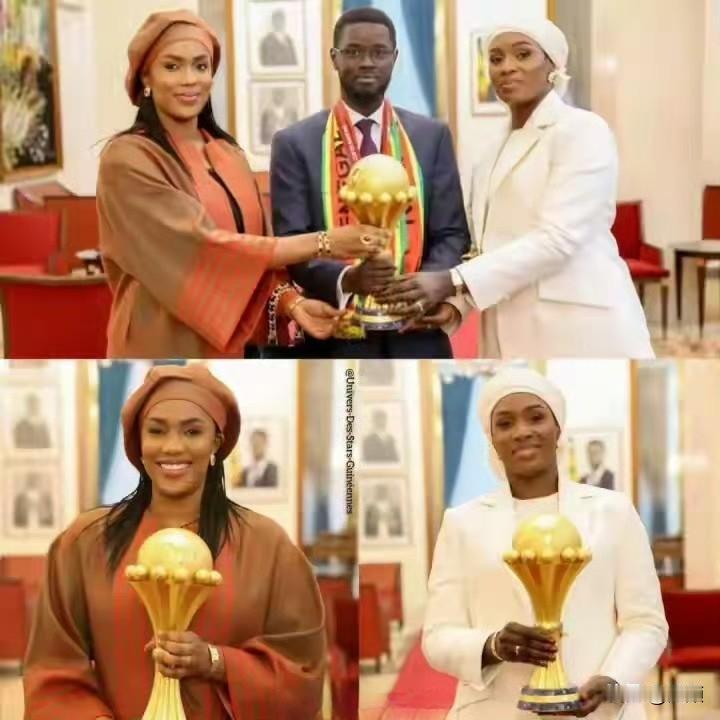 45岁塞内加尔总统法耶携两位夫人庆祝国家队非洲杯夺冠!大老婆玛丽是其29岁所娶,育有4子;二老婆阿布萨2023年成婚,育有1子,法耶2024年当选总统,此次夺冠他还官宣全国带薪休假+重奖球员!