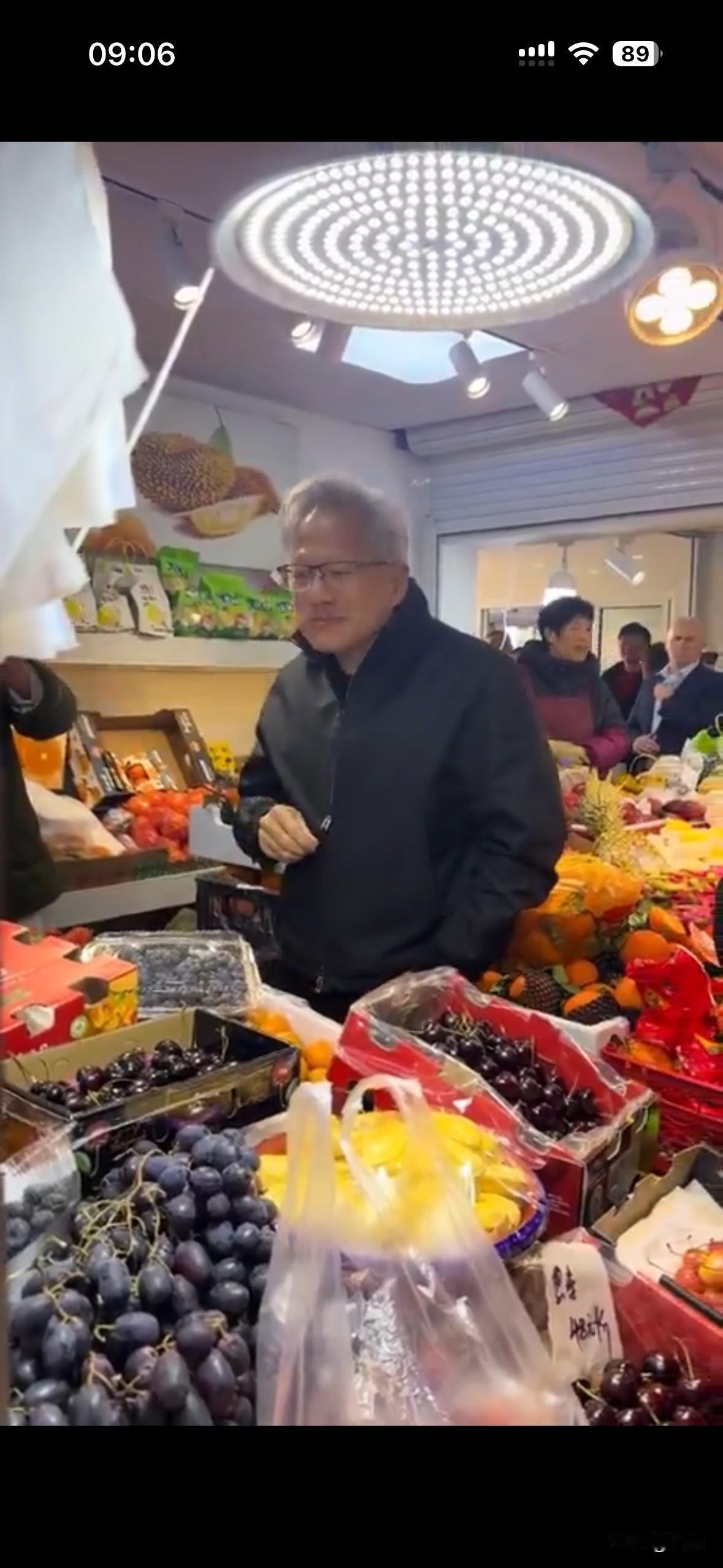 黄仁勋在陆家嘴乳山路菜市场买草莓,还给果摊老板发签名红包……这画面看起来好喜庆好