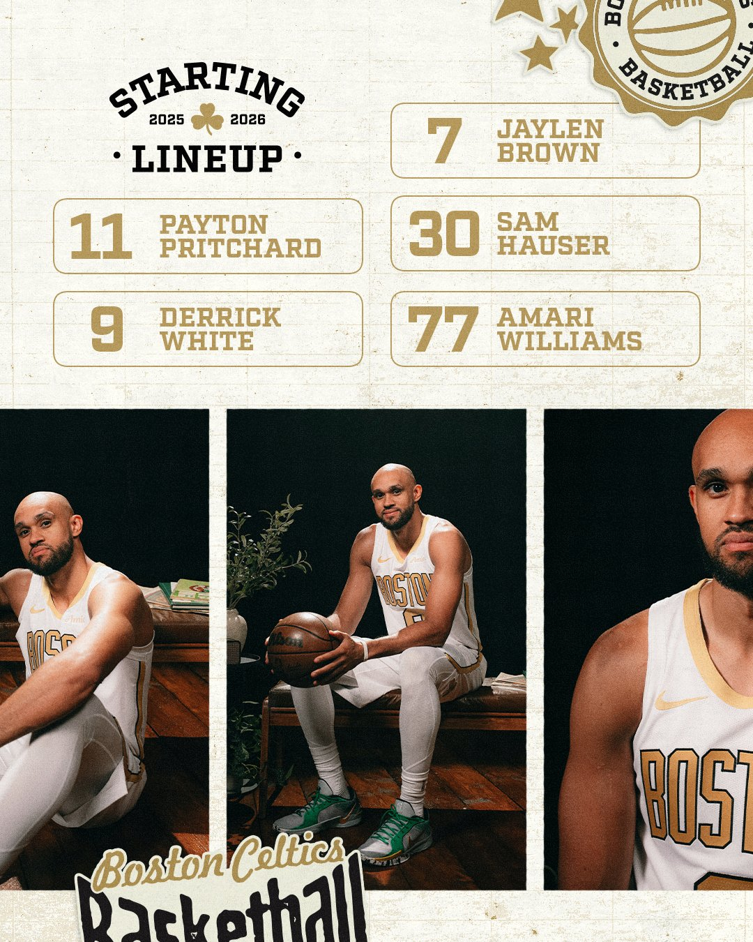 首发阵容⤵️☘️ 普里查德☘️ 布朗☘️ 豪瑟☘️ 怀特☘️ 阿马里-威廉姆斯波