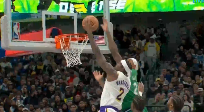 第三节比赛中,加福德身后大帽范德比尔特,独行侠第三节轰出31-12反超湖人。