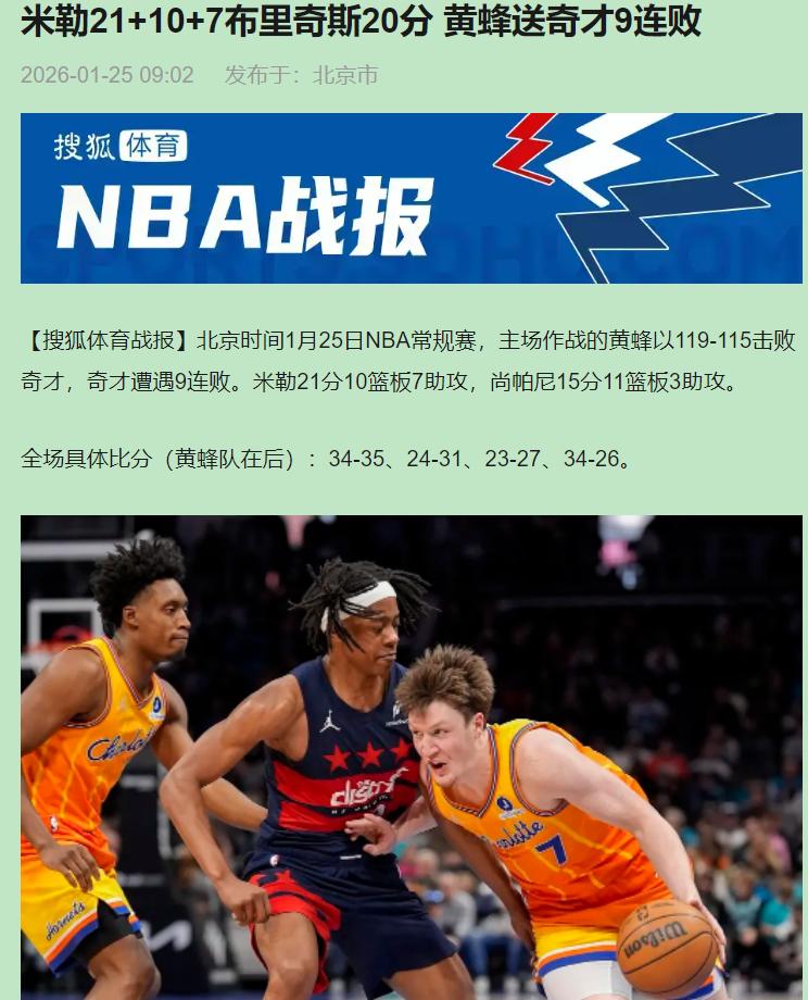 你说气不气人?黄蜂打奇才这种垫底队,赢是赢了,可我看得比输了还难受!领先快20分都能被追到只差2分,最后险胜4分——这哪是季后赛队伍,这是速效救心丸代言队吧? 真的,黄蜂这赢球,反而暴露了一堆毛病。米勒和三球数据好看,但全队防守简直像放假!第三节一放松,奇才咔咔一顿追,内线随便进,篮板也抢不过。这要是打强队,早被打穿了。说白了,现在黄蜂就靠球星硬解,防守基本看心情。 奇才呢?更是离谱。摆烂都摆得让人着急!眼瞅着要翻盘,关键时刻又不会打球了。特雷·约翰逊和萨尔能得分,但到最后全在单干,没人组织。防守更是白给,黄蜂命中率都快五成了。九连败真不冤——攻防都是联盟垫底,今天无非是对攻对嗨了而已。 所以别看比分紧,这比赛就是“菜鸡互啄”现场版。黄蜂这么打,季后赛悬;奇才这么输,状元签稳。俩队球迷今晚估计都得失眠:一个赢得不痛快,一个输得不甘心。要我说,赶紧都补补防守吧,不然这球看得太下饭了!米勒21+10+7布里奇斯20分 黄蜂送奇才9连败