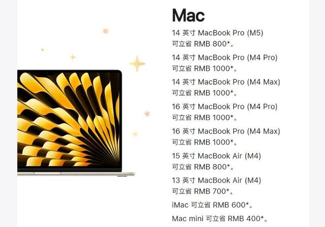 根据苹果官网公示,本次优惠力度因产品而异。其中MacBookPro部分机型让利幅度最大,达到1000元;iPhone阵营中,iPhone16和iPhone16Plus立省300元,iPhone16e立省200元,iPad、AppleWatch及AirPods等配件也有不同程度优惠。但作为当前苹果旗舰机型的iPhone17系列,无论是标准版还是Pro系列,均未出现在优惠名单中,延续了苹果新品上市后短期内不参与官方降价的惯例。