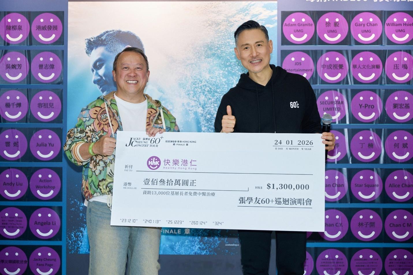 张学友60+巡回演唱会于2026年1月24日(昨晚)在香港红馆圆满落幕,这次巡演创下新纪录,为历时2年7个月、总计324场写下终章。64岁的张学友在最终场状态依旧出色,安可环节更连续献唱十余首歌曲,将现场气氛推向高潮。全场座无虚席,钟镇涛、曾志伟、庾澄庆、张家辉、邱淑贞等众多圈中好友齐聚捧场,场面热烈。演唱会以《留住这时光》揭开序幕,《我应该》、《等你等到我心痛》、《三天两夜》等经典金曲引发全场大合唱。张学友在感言中解释了这次举办60+演唱会的原因,"我不相信60+是应该停在这里的数字,想证明给自己知道我是可以的,所以很任性地开了这个演唱会,证明60不是一个恐怖的数字。"他特别感谢了观众支持使巡演能走过两年零七个月,并现场做出可爱的比心手势,也在现场真挚感谢家人与团队,并轻松展示一字马,承诺会继续保重身体、钻研歌唱。而昨晚的安可环节尤其精彩,张学友精心演绎了多首心中金曲,包括《爱是永恒》、《她来听我的演唱会》、《讲你知》、《明日世界终结时》、《原来只要为你活一天》、《只愿一生爱一人》、《我醒着做梦》、《真情流露》、《这个冬天不太冷》,曲目丰富,学友尾场实在诚意十足。他在演唱《只愿一生爱一人》时更特别唱出国语版《让我一次爱个够》向台下的庾澄庆致敬,随后《今晚要尽情》、《饿狼传说》、《非常夏日》等快歌让全场观众起身合唱,最终以摇滚版《吻别》为整个巡演画下句点。此次演唱会将所有花篮赠礼转为善款,合共捐赠130万港元予慈善机构“快乐港仁”。张学友亦透露自己不愿休息太久,下一个计划是筹备制作音乐剧,期待他全新的舞台篇章。