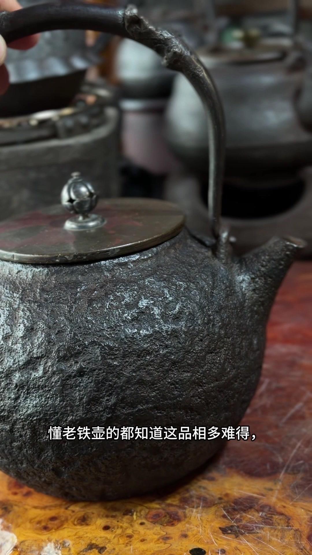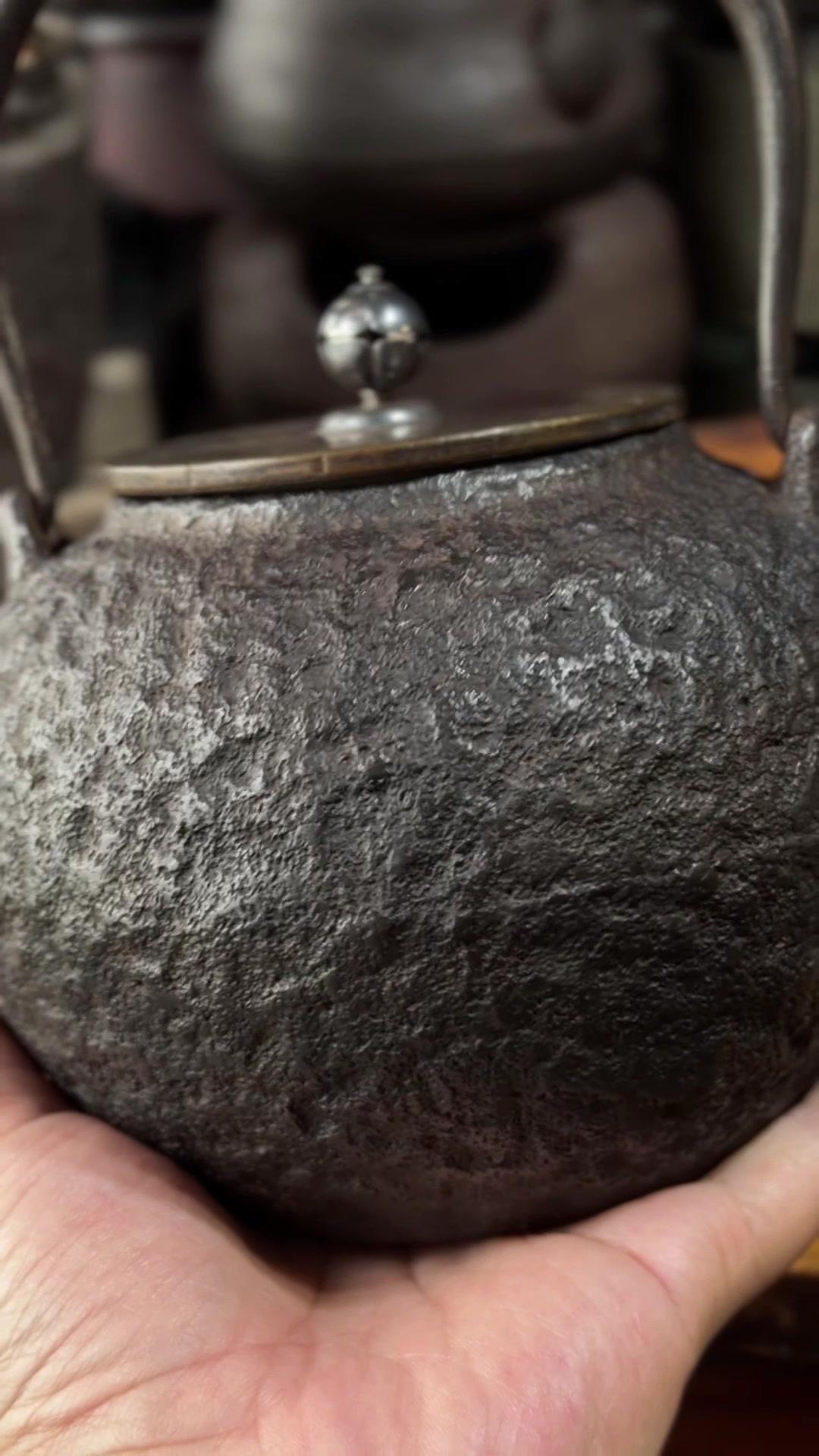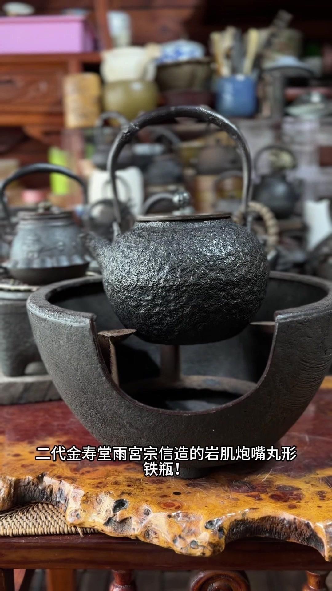 发现明治早期硬货!家人们看过来,明治早期的硬货来了!二代金寿堂雨宫宗信造的岩肌炮嘴丸形铁瓶,正儿八经名家手作。银摘钮配斑紫铜盖,配色质感直接拉满,岩肌纹理古朴又有层次,炮嘴丸形经典器型,端庄又大气。 满水1180cc,日常煮茶把玩都适配。关键是全美品无瑕疵,铁性超棒,养出来包浆润透,喝茶更有滋味。 金寿堂的老炉,雨宫宗信的工,明治早期的底蕴,懂老铁壶的都知道这品相多难得,收藏使用两不误,错过真的拍大腿!