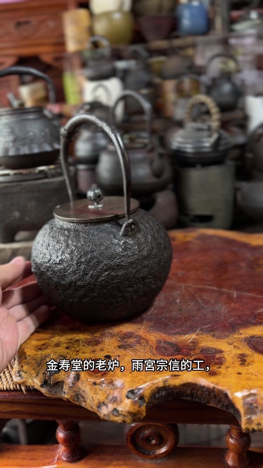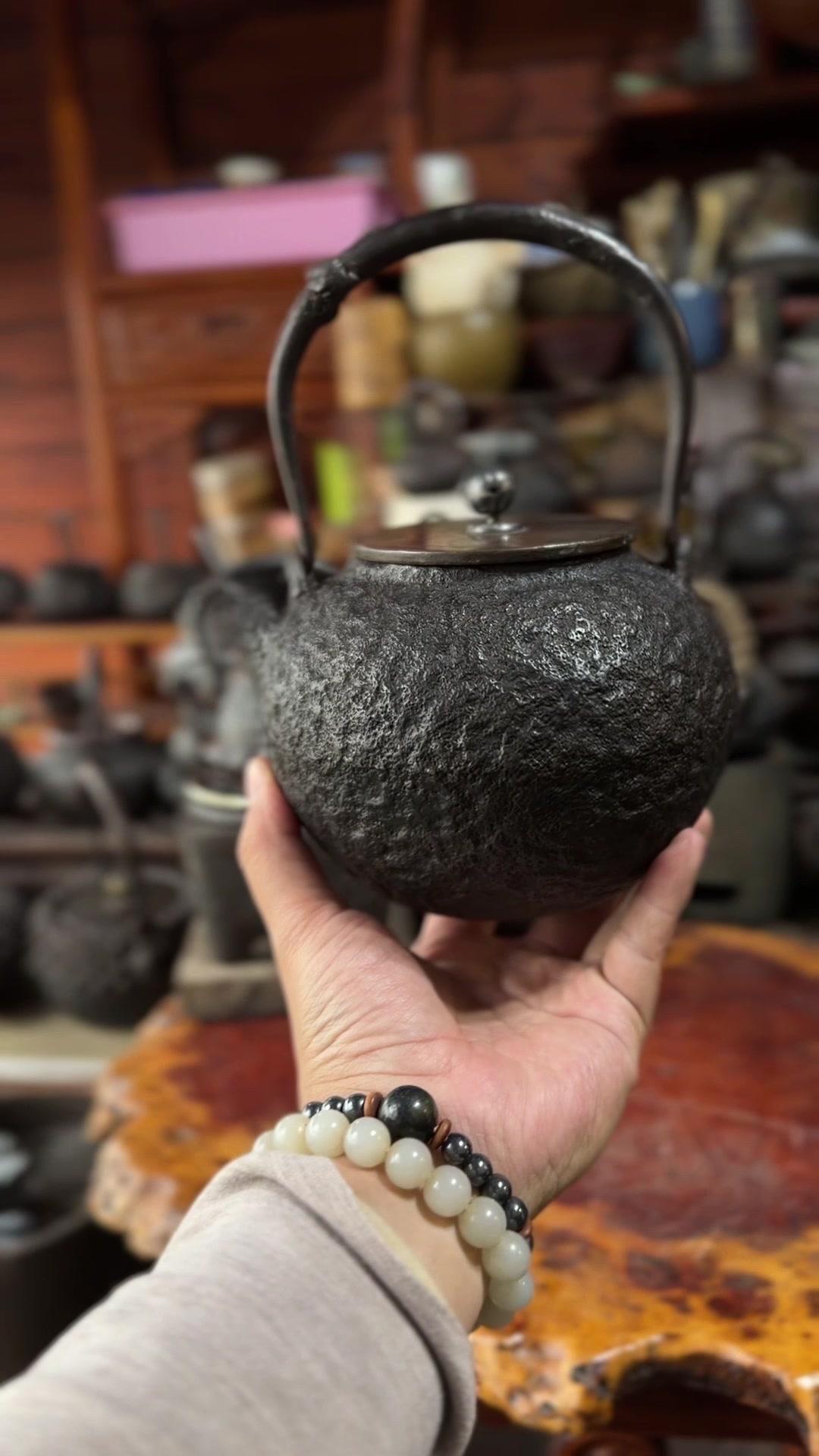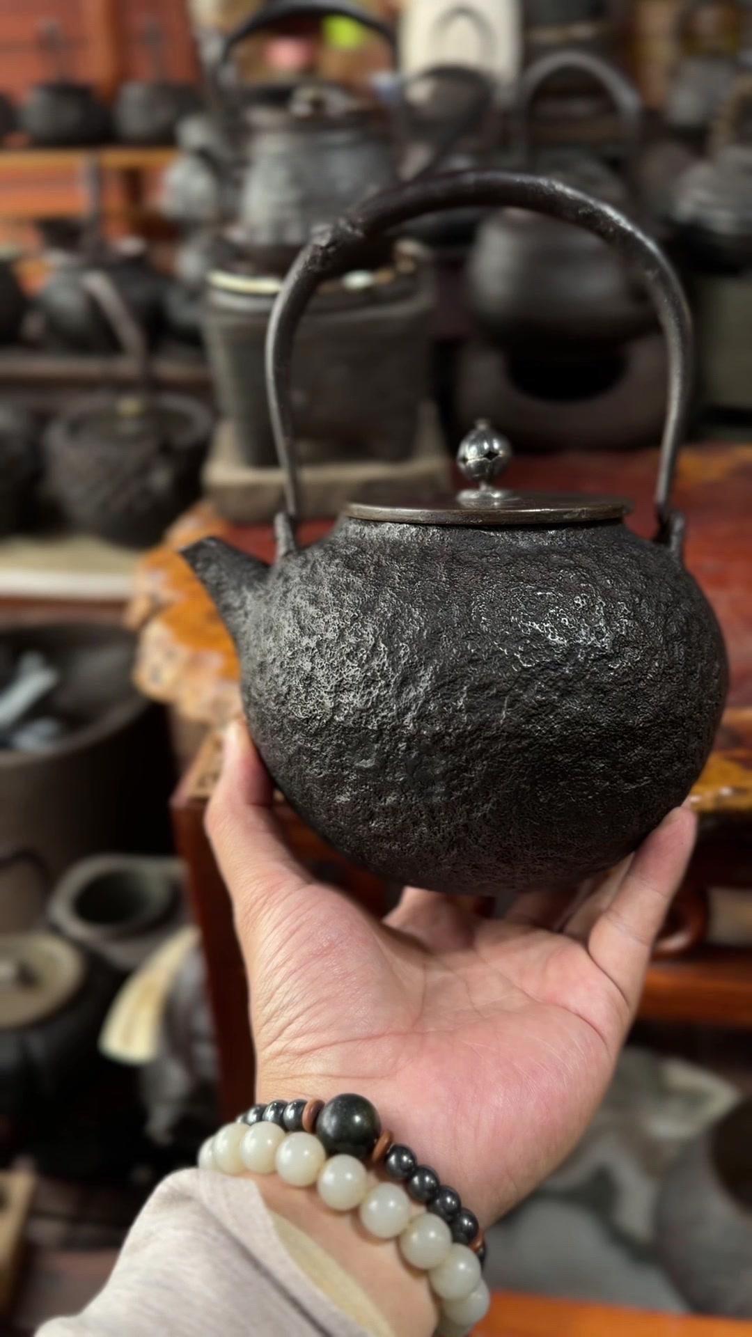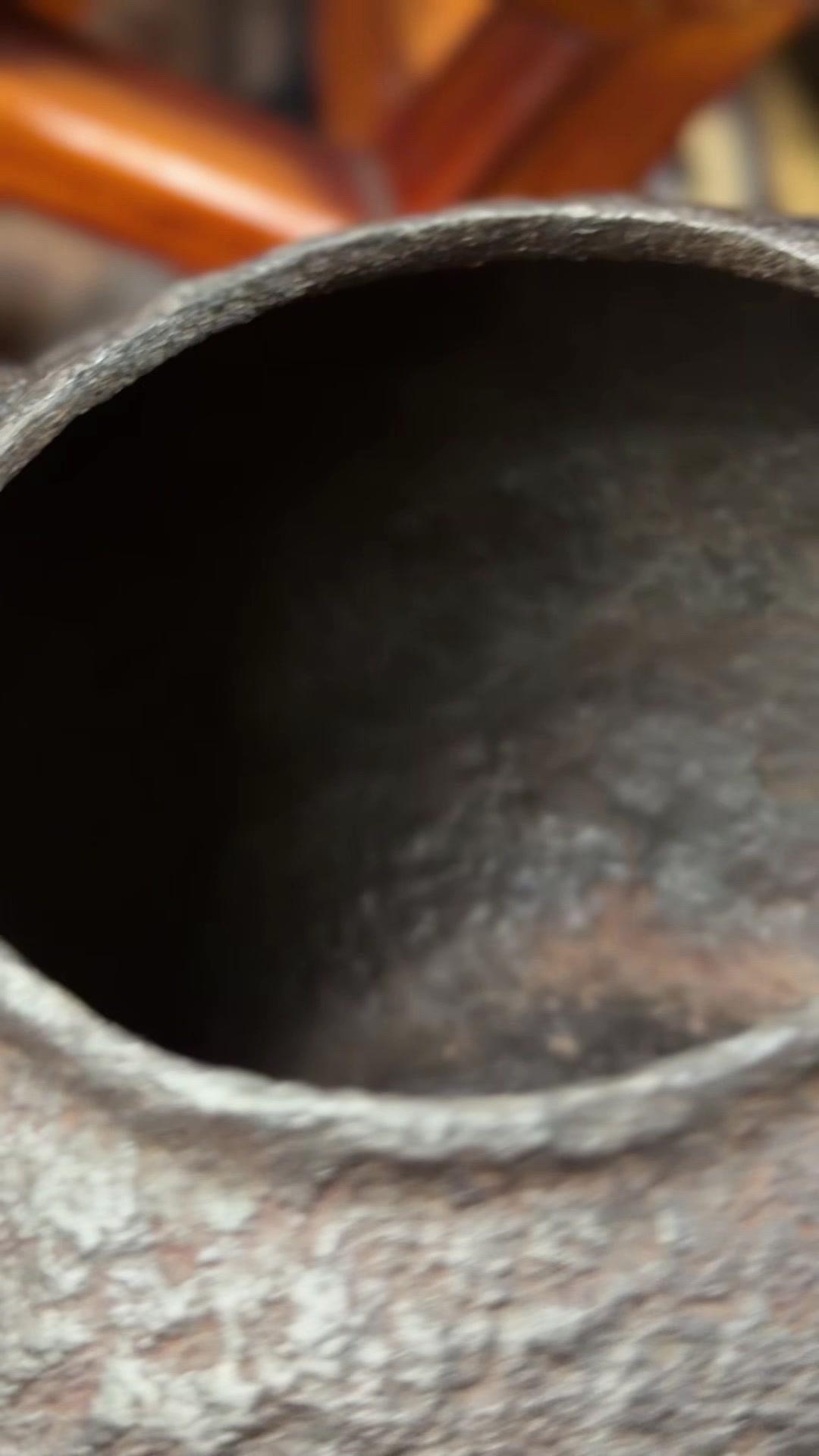 发现明治早期硬货!家人们看过来,明治早期的硬货来了!二代金寿堂雨宫宗信造的岩肌炮嘴丸形铁瓶,正儿八经名家手作。银摘钮配斑紫铜盖,配色质感直接拉满,岩肌纹理古朴又有层次,炮嘴丸形经典器型,端庄又大气。 满水1180cc,日常煮茶把玩都适配。关键是全美品无瑕疵,铁性超棒,养出来包浆润透,喝茶更有滋味。 金寿堂的老炉,雨宫宗信的工,明治早期的底蕴,懂老铁壶的都知道这品相多难得,收藏使用两不误,错过真的拍大腿!
