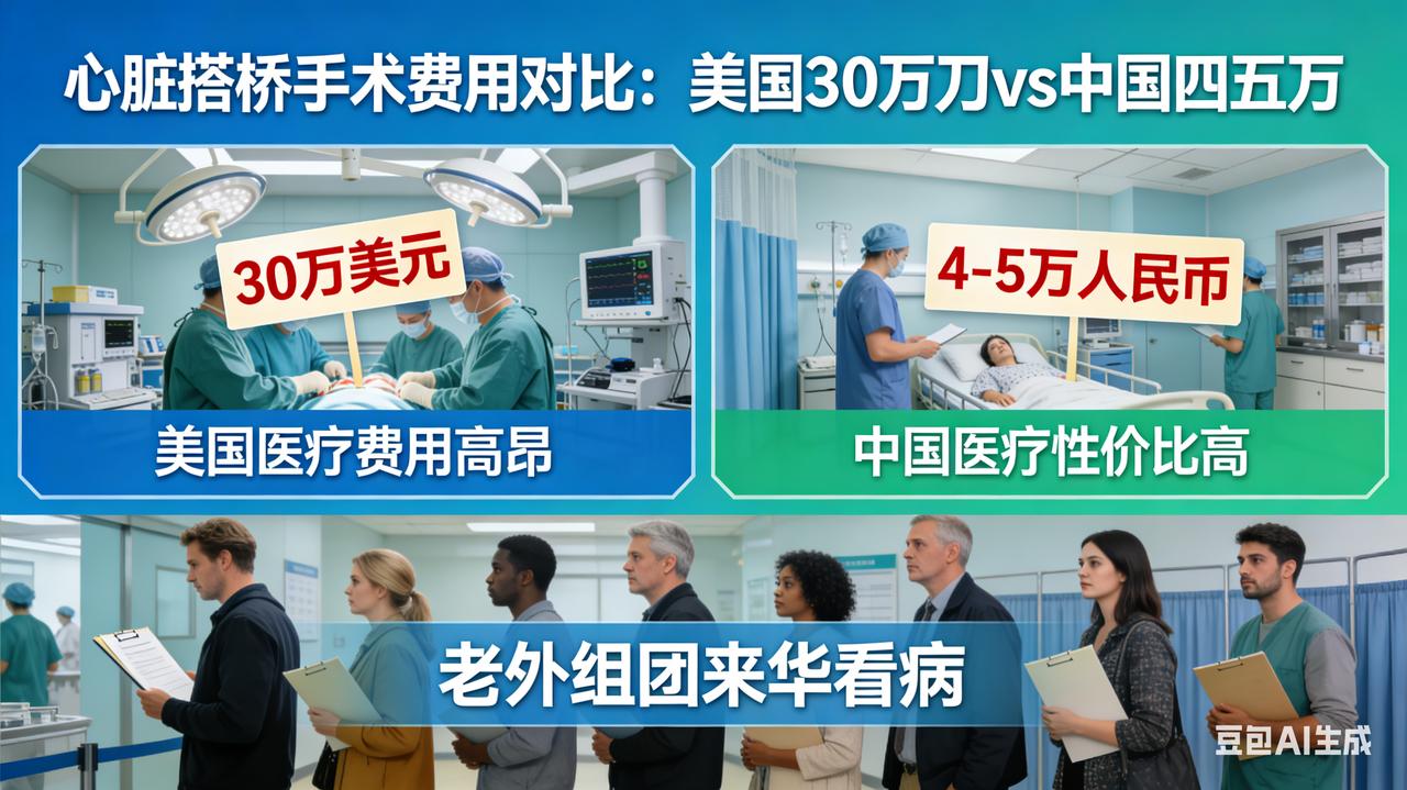 心脏搭桥手术美国 30 万刀,中国仅需四五万!老外组团来华看病 【深度解析】跨越太平洋的生命账单:揭秘心脏搭桥手术10倍价差背后的医疗生态 一张心脏搭桥手术的账单,在太平洋两岸划出了一道令人窒息的鸿沟:美国平均30万美元(约合210万人民币)的“天价”,与中国仅需4-5万人民币的“亲民价”,构成了高达10倍的悬殊比价。这不仅是数字的震撼,更是两国医疗体系底层逻辑的剧烈碰撞。 在美国,这30万美元并非单一手术费,而是一个庞大的商业闭环。其中包含了心脏外科医生的高薪(通常是全球顶薪)、昂贵的商业保险行政成本、医院运营的巨额开销以及医疗器械厂商的高研发溢价。美国医疗体系高度市场化,每一项服务都被明码标价,且缺乏统一的价格管控,导致“医疗通胀”常年居高不下。对于无保险或低保患者,这不仅是账单,更是导致个人破产的导火索。 反观中国,四五万元的低价并非建立在牺牲质量之上,而是源于独特的“中国模式”。首先,公立医院的公益属性决定了定价基准,国家通过医保谈判和集中采购(集采),将昂贵的进口支架、搭桥血管等耗材价格“打”至地板价,降幅常达90%以上。其次,中国医生的人力成本虽在提升,但相较于美国仍处于合理区间,且医院运行效率极高,床位周转率远超欧美。 更关键的是,中国顶尖心外科中心的技术实力已比肩国际顶尖水平。在北京阜外或上海中山医院,经验丰富的专家团队能以极高的成功率完成手术,而成本却因规模化效应被极致压缩。 这10倍的价差,本质上是“医疗工业复合体”与“民生保障体系”的对决。它向世界证明:生命的尊严不应由钱包的厚度决定,中国正在用极致的性价比,为全球医疗可及性提供一个东方样本。