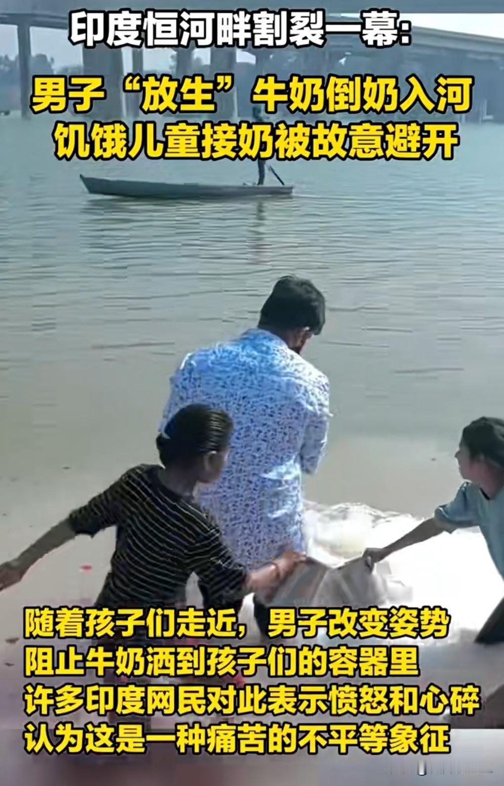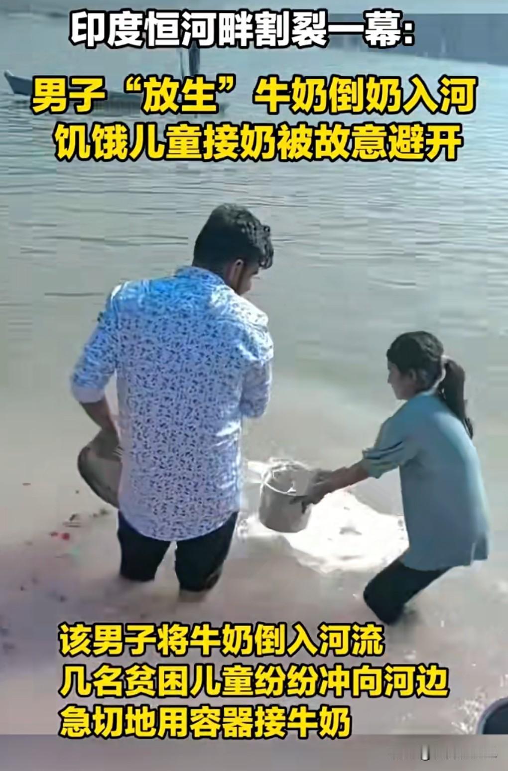 这真的是太丧心病狂了,竟然宁可倒掉牛奶,也不给那些贫困的儿童。 近日印度,一个男子愚蠢的向恒河里面倒牛奶。 这真的是太污染环境了。如果他是放生牛奶的话,说明他非常的愚蠢。 有别的孩子拿桶去接那个牛奶,他竟然故意避开这些孩子的桶,宁可倒掉也不给这些贫困的儿童。 这样的人真的是没点慈悲之心。 男人的行为让人感到愤怒和心碎。 贫富差距实在是太不平等了。