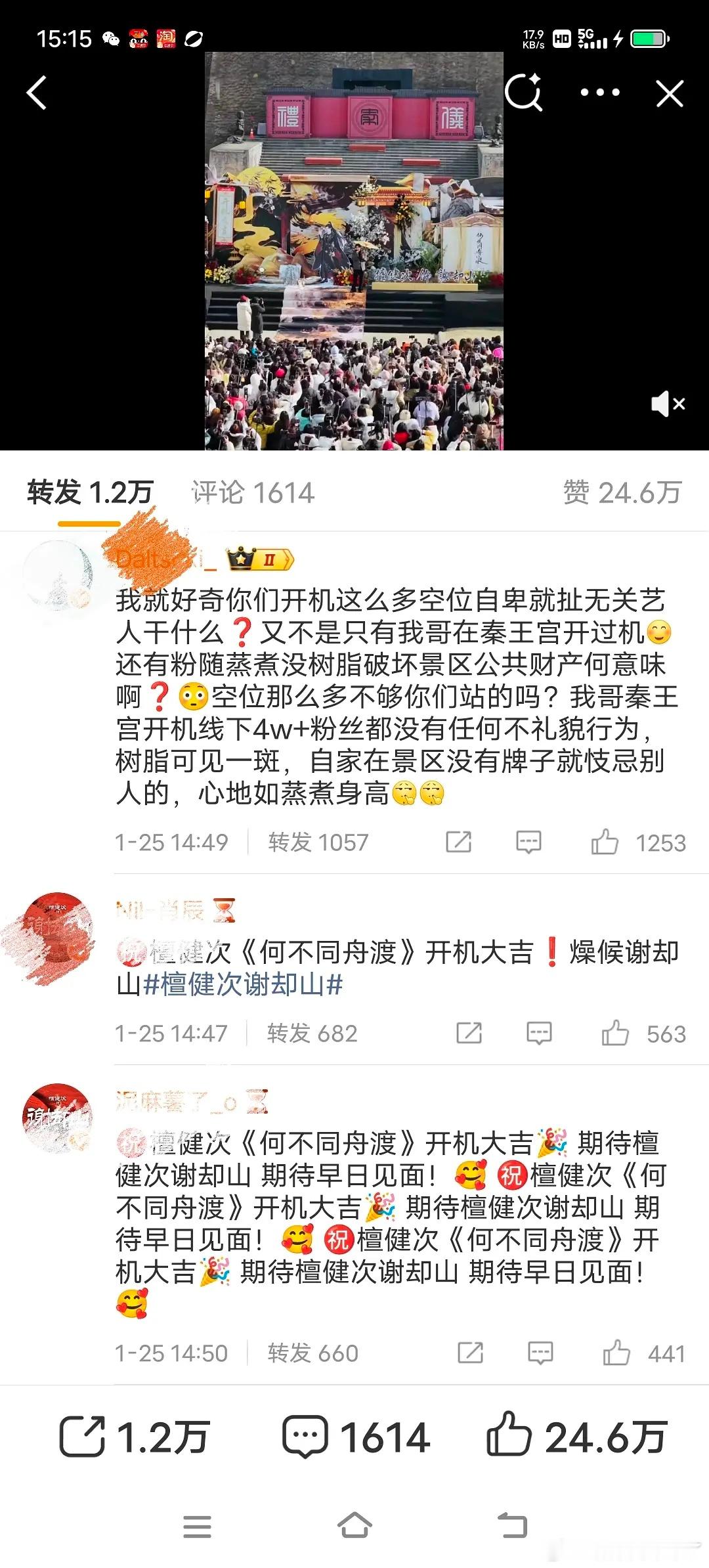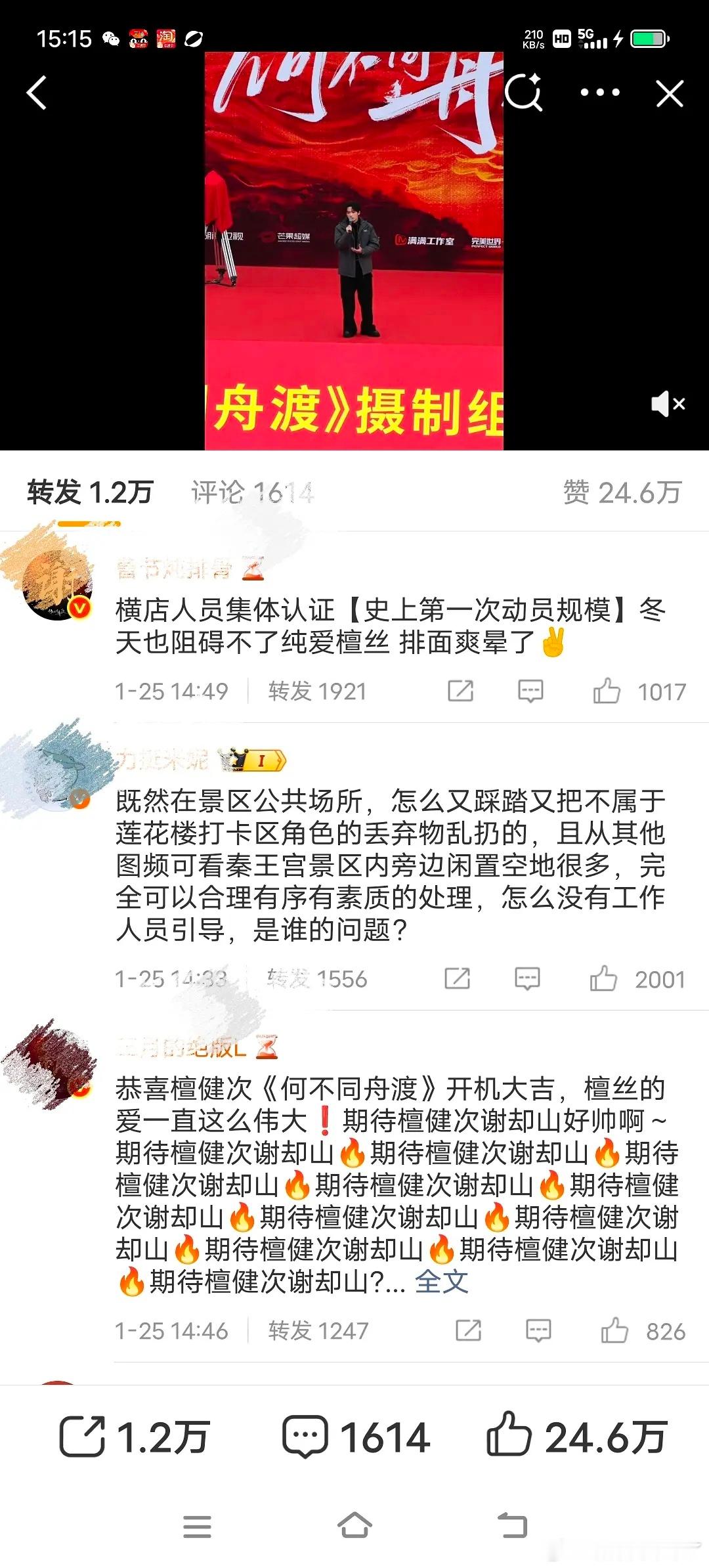 成毅粉丝和檀健次粉丝在横店影视城的转发区battle起来了,但《何不同舟渡》制片人导演认证:横店史上最大应援