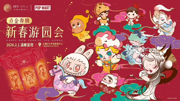 此次,BFC联合泡泡玛特倾情打造新春游园会,可爱的IP们一齐换上马年点金奔腾新装扮,汇聚在外滩送上新春祝福,各式祈福灯组也带来沉浸式潮玩互动体验,更有新春点金奔腾主题快闪店呈现好礼。