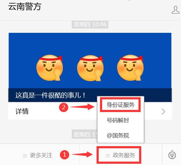 或在“云南警方”微信公众号后台发送留言“身份证服务”即可获得服务网址链接