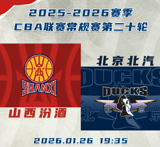 虎扑01月25日讯明日CBA常规赛:山西男篮将对阵北京男篮。