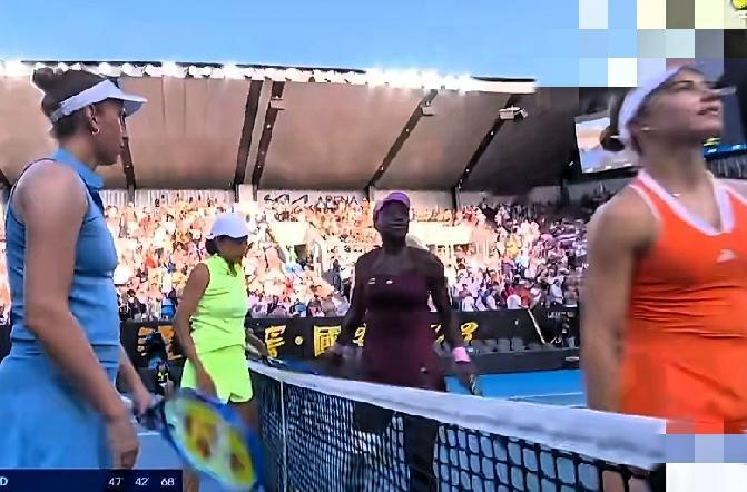 张帅,定海神针,一锤定音! 刚刚结束澳网女双第二轮,张帅/梅尔滕斯以7-5, 4-6, 7-6(10)的比分,决胜盘抢十挽救3个赛点,3比1奇迹般地逆转战胜两位天才少女约维奇/姆博科组合。打进澳网女双第三轮。 张帅在这场异常艰难的比赛中,最后的关键时刻,发挥出色,稳住了局面,扭转了劣势,并一锤定音拿下比赛胜利!打的太好了! 第三轮张帅组合对阵巴蒂斯特/斯特恩斯,争夺女双八强。