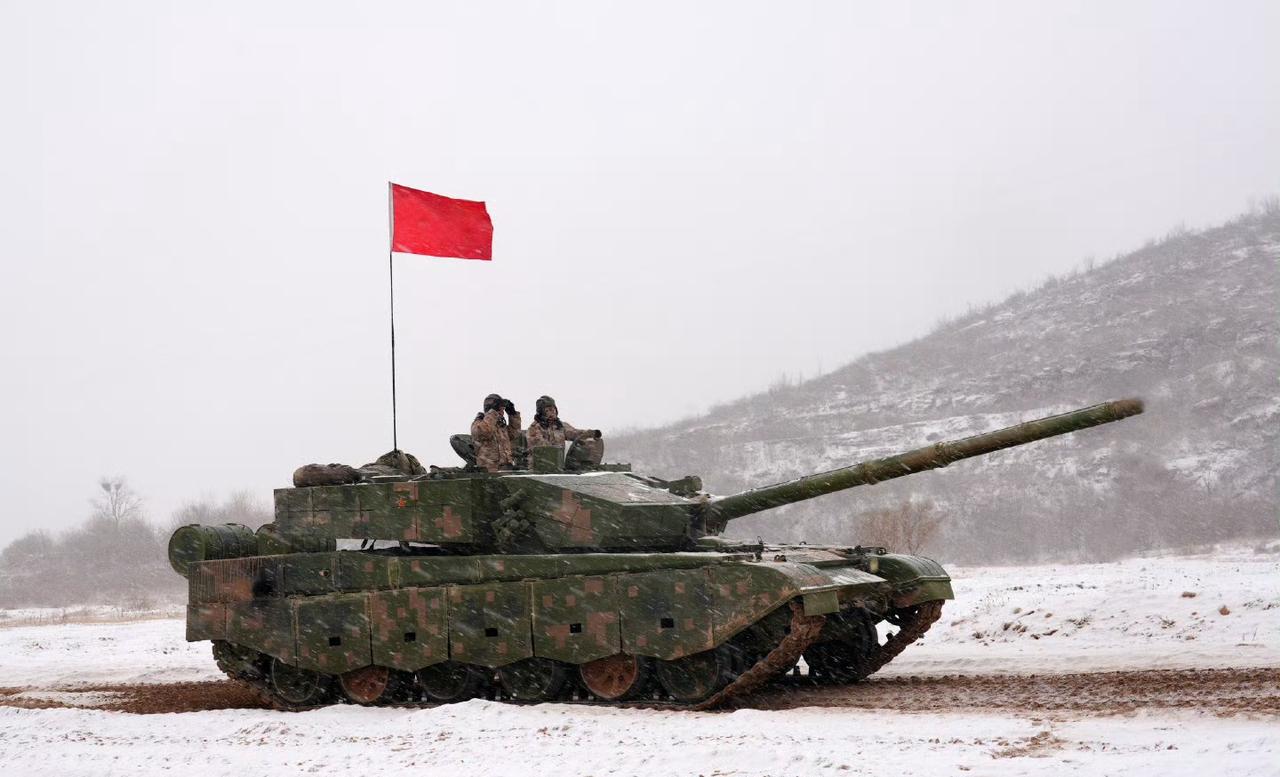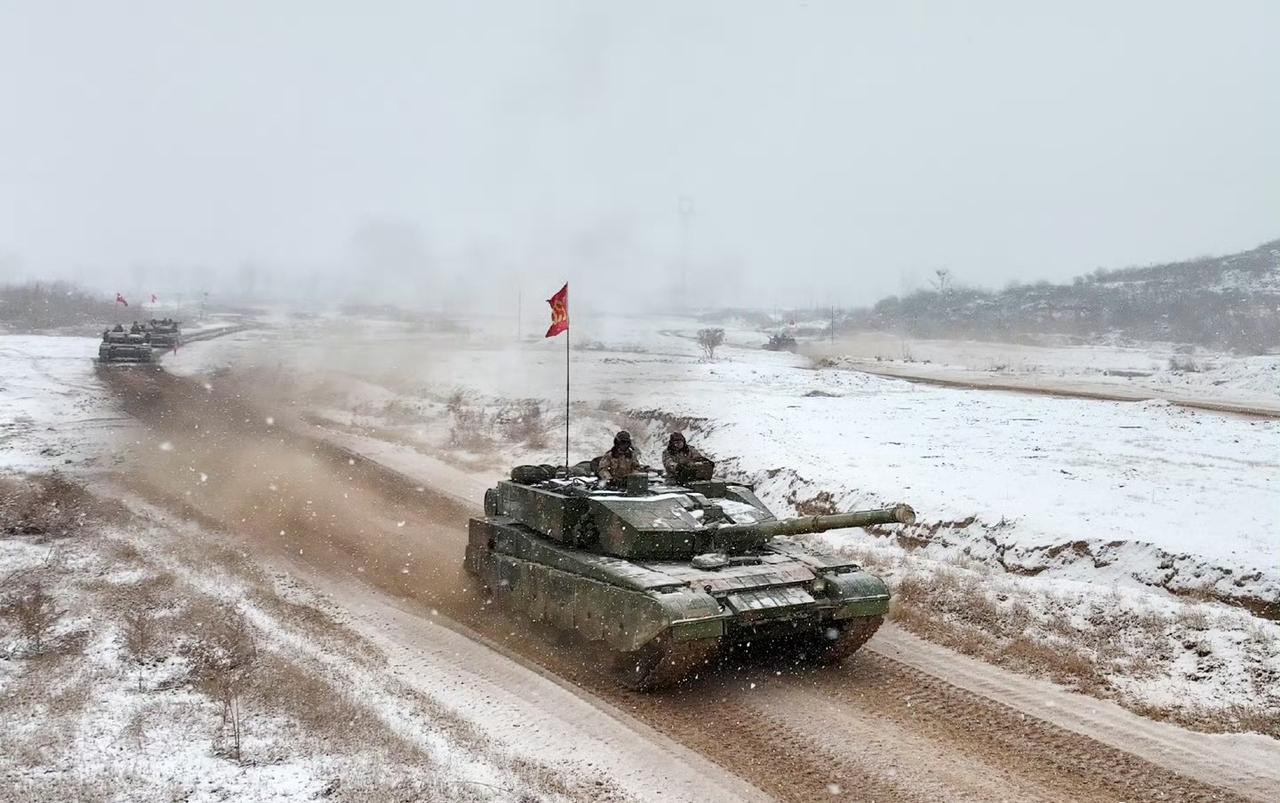 隶属于中部战区第82集团军陆军坦克旅的99A坦克,正在雪地里开展训练。