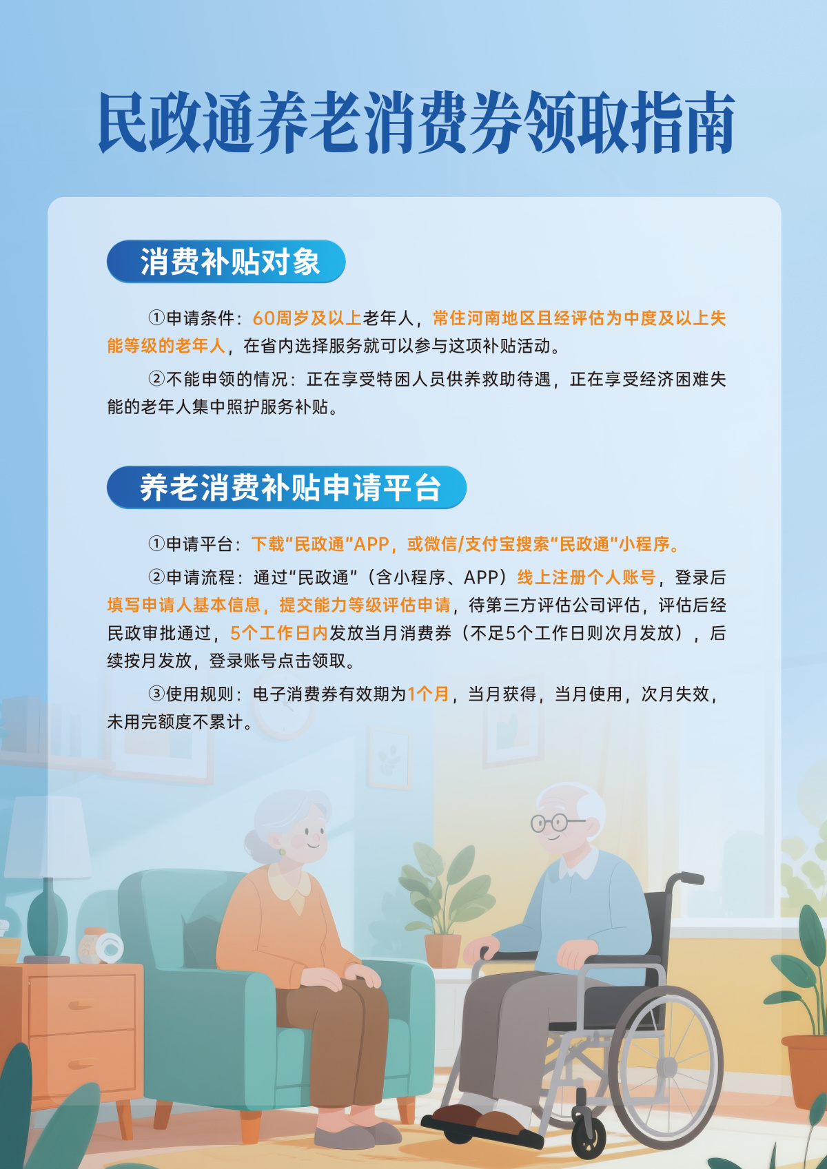 此外,正在享受特困人员供养、经济困难失能老年人专项补贴等政策的群体,暂不能重复申领此项消费券。