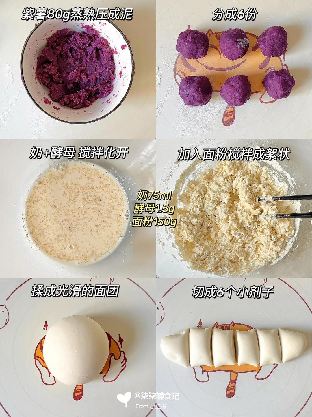 松松软软的口感包裹着香甜紫薯夹心,简单又营养,宝宝可喜欢啦~早上搭配一杯奶轻松搞定早餐,做法简单,快试试吧~ 🛒食材准备: - 面粉150g - 奶75nl - 酵母1.5g - 熟紫薯80g ⚠️大宝宝可以紫薯泥加点炼乳更好吃哦~