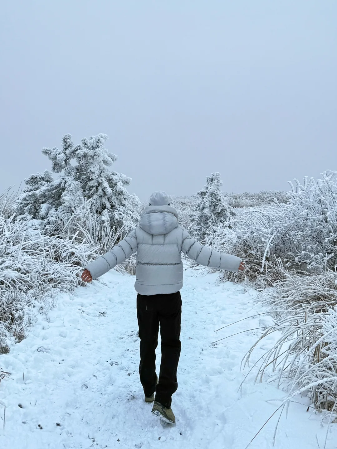 厚羊毛袜 + 高帮防水徒步鞋 + 冰爪(雪地必备,防滑保命)
