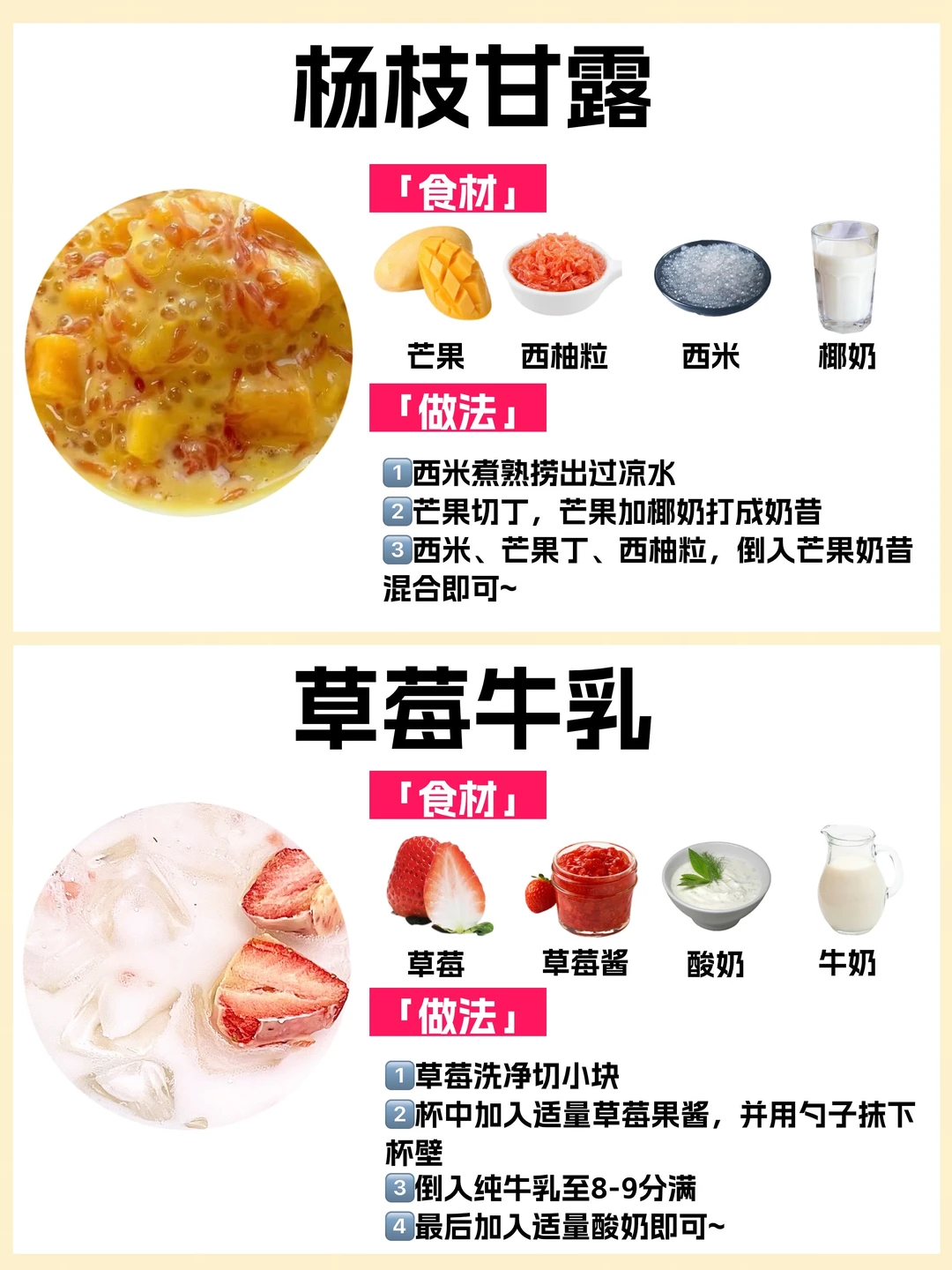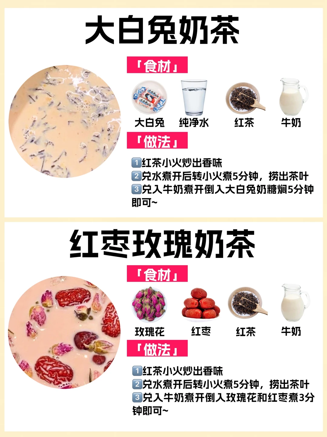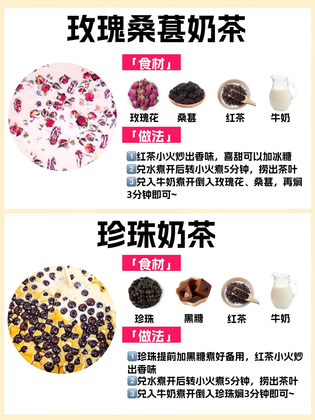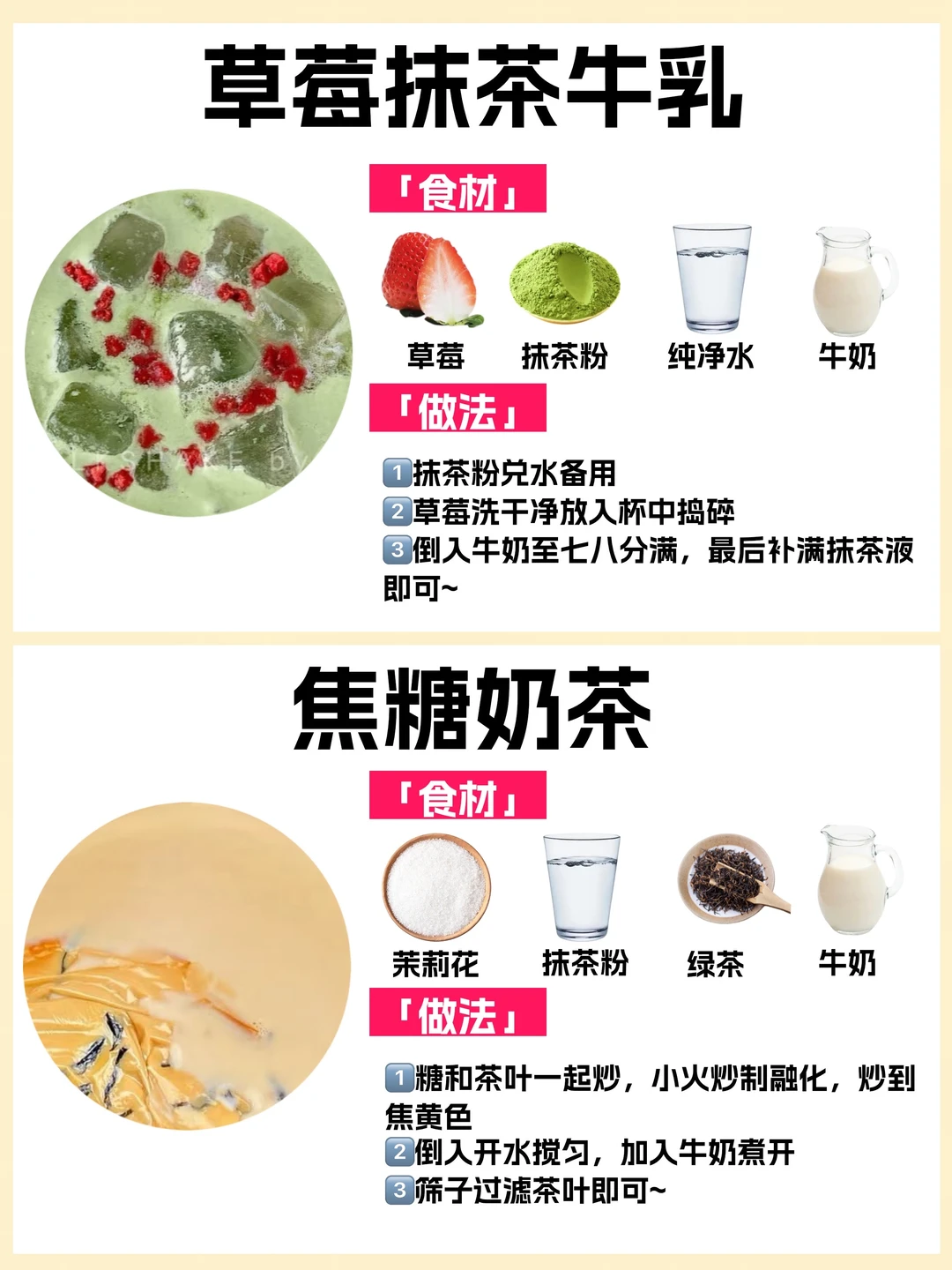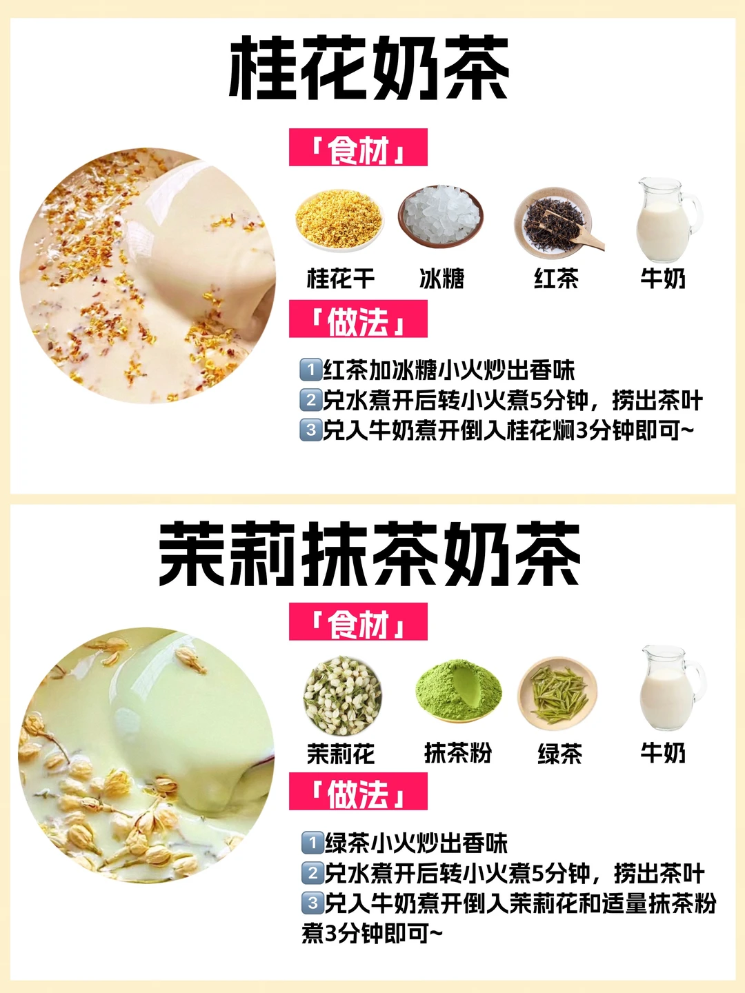 🥰学会这些在家就能实现奶茶自由❗️今天给你们整理了10种热门自制奶茶公式㊙️附食材和教程🔥简单好喝✅有手就会✅自己做健康还低卡‼️爱喝奶茶的姐妹快收藏~ ✅玫瑰桑葚奶茶 ✅珍珠奶茶 ✅桂花奶茶 ✅茉莉抹茶奶茶 ✅大白兔奶茶 ✅红枣玫瑰奶茶 ✅杨枝甘露 ✅草莓牛乳 ✅草莓抹茶牛乳 ✅焦糖奶茶 喜欢💕请多多点赞,感谢支持~