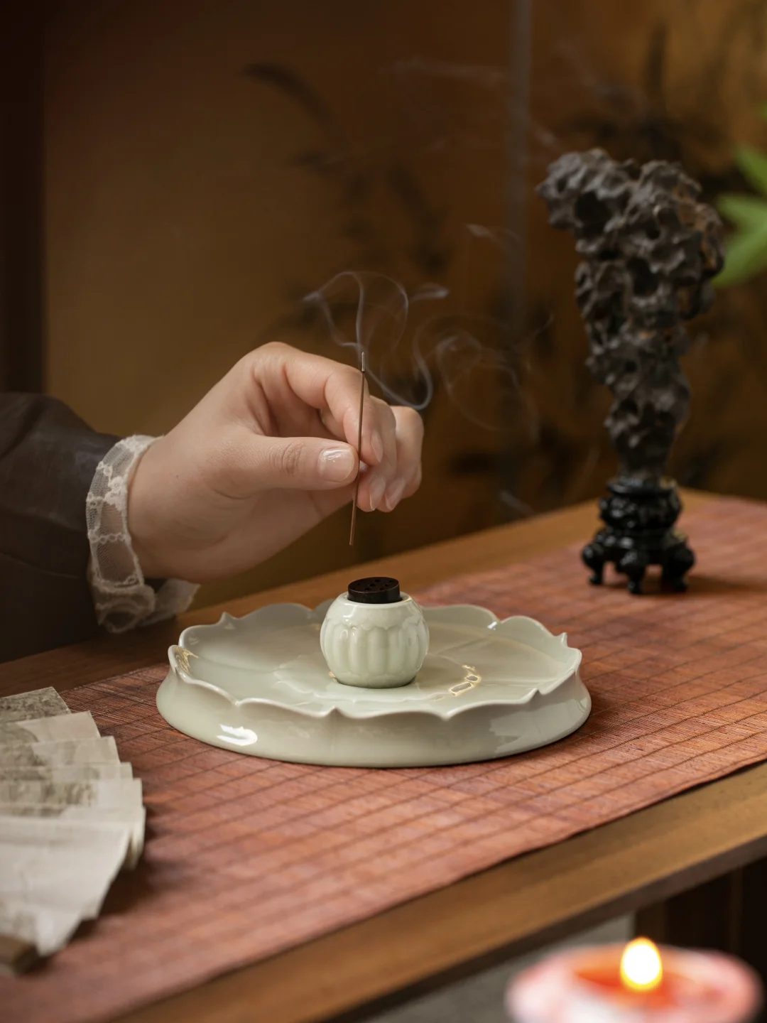 祥云纹样,寓意吉祥高升。香插立香,香盘承灰,一套齐整,是长辈熟悉的传统美,也为他们的案头添一份庄重的仪式感。