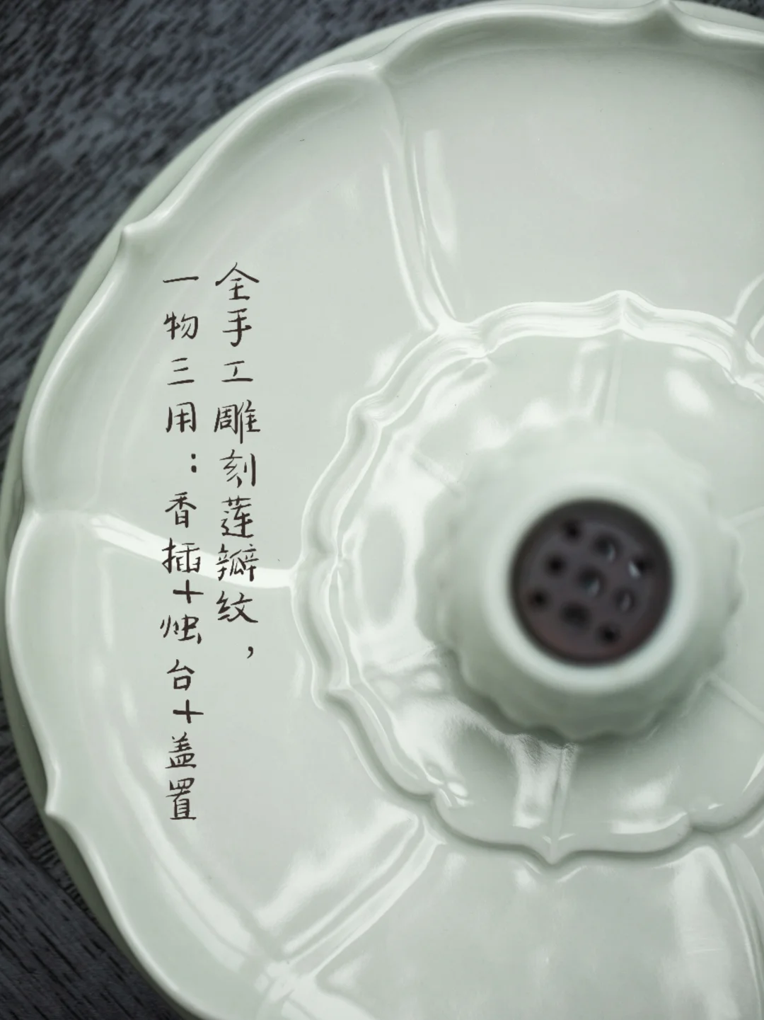 形如古时烛台,可插香,亦可置烛。如意莲瓣造型,寓意美满,小巧一柄,是多用的贴心小物。