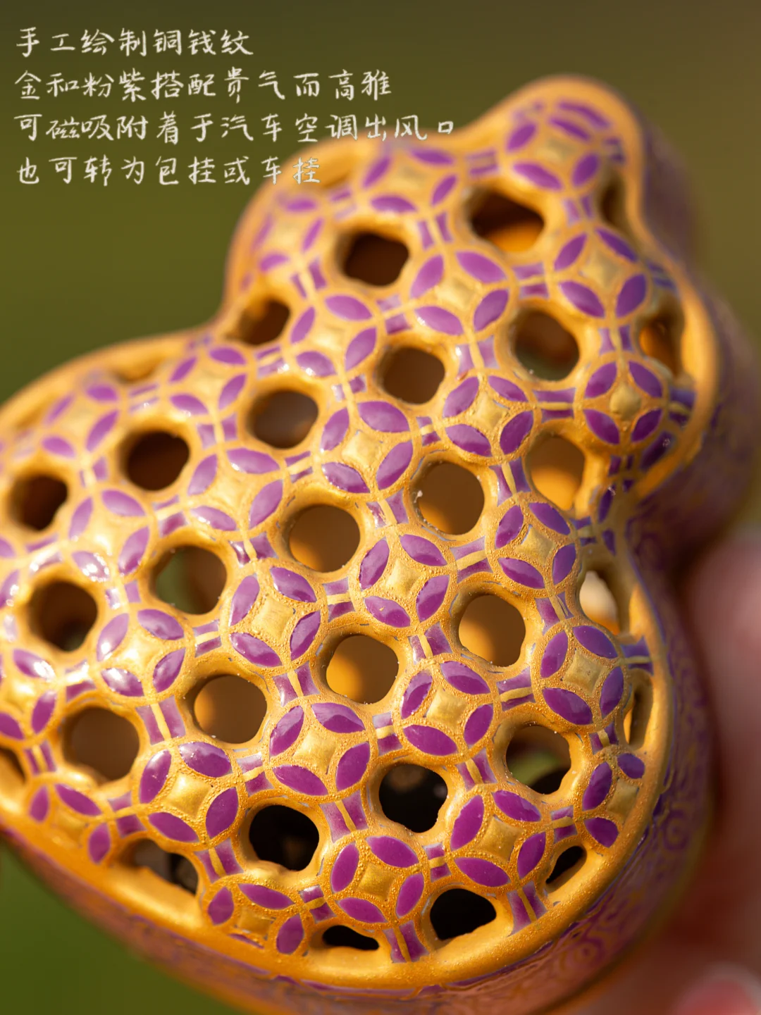 葫芦造型,寓意“福禄随身”。磁吸设计,可安于出风口,也可挂于包上。一缕清韵伴随出行,是移动中的安稳惦念。