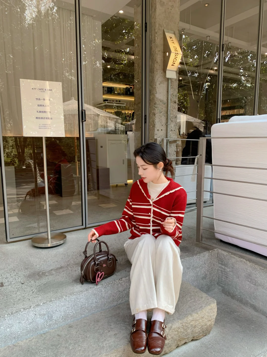粉粉糯糯的针织开衫像把春天揉进了毛衣里,配上浅灰短裙,在草坪边吹着风,整个人都变