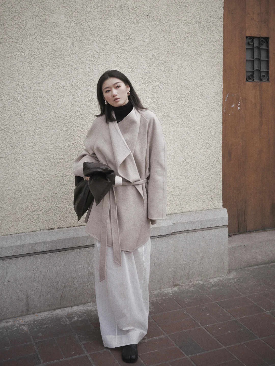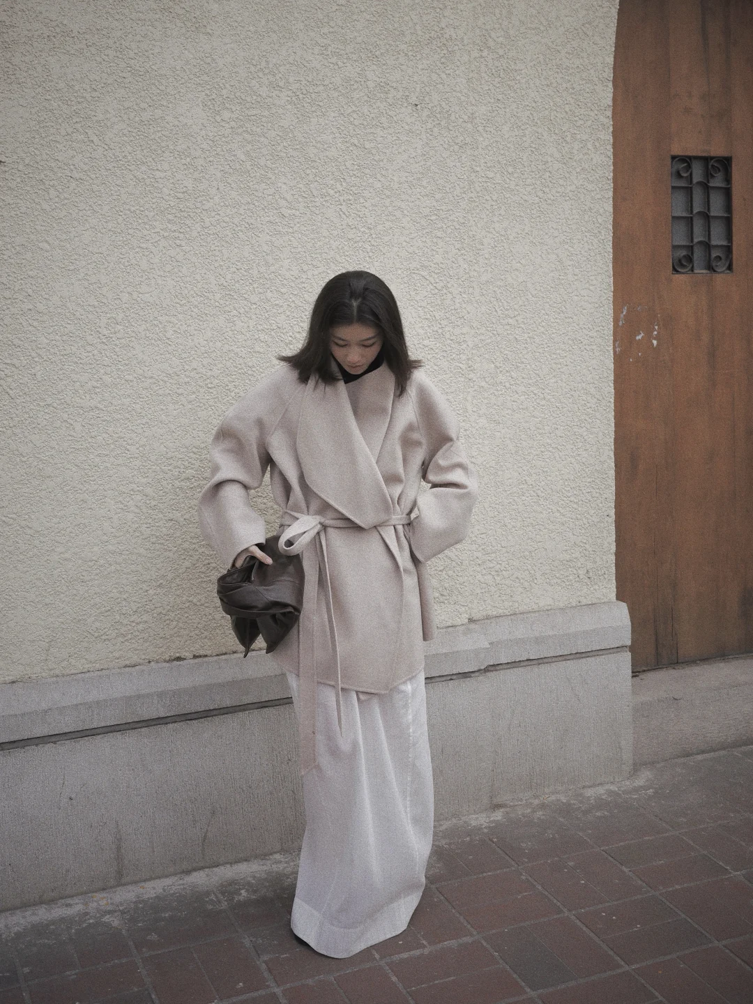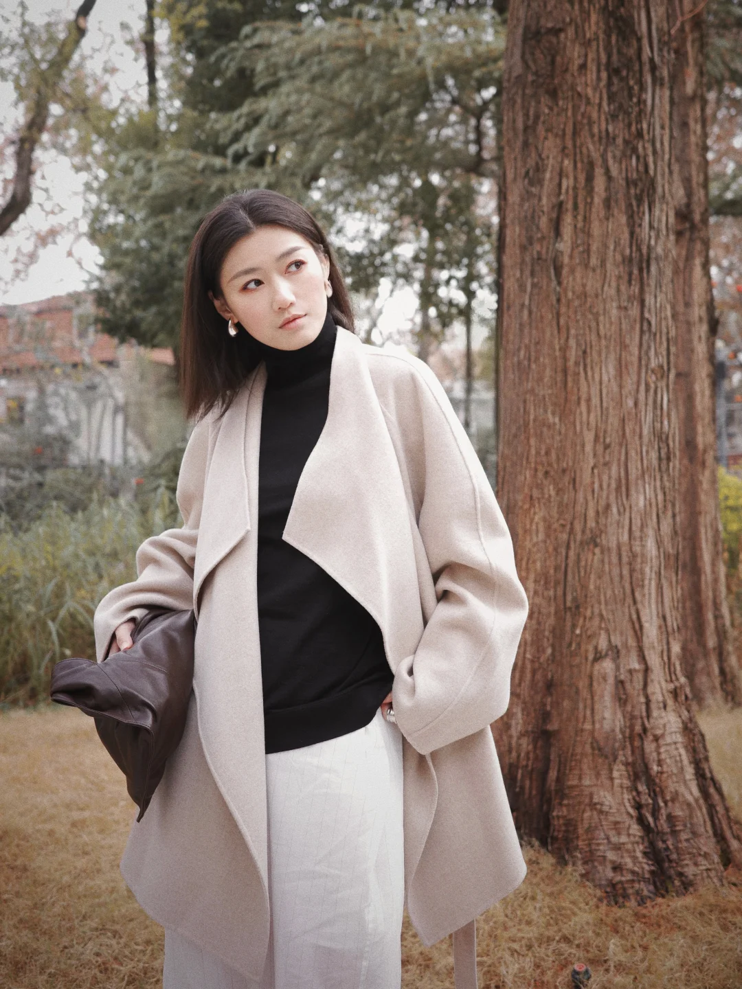 被胡静的粉色大衣种草了!💖浅粉大衣+米白内搭,温柔到发光,黄皮穿也显白!