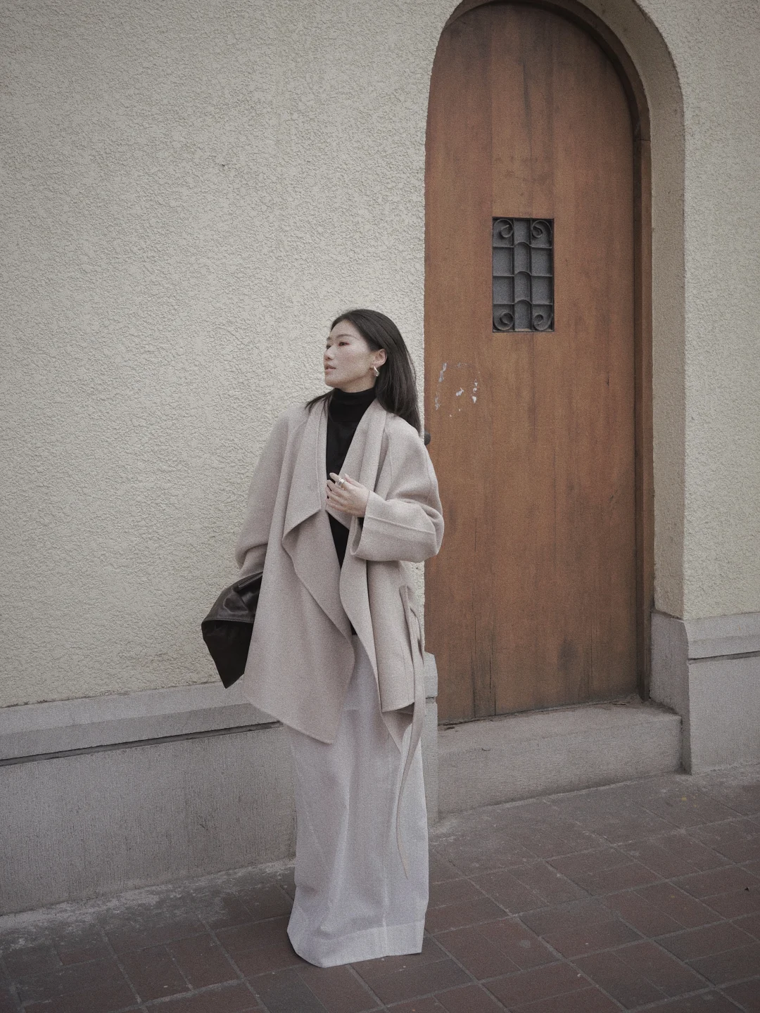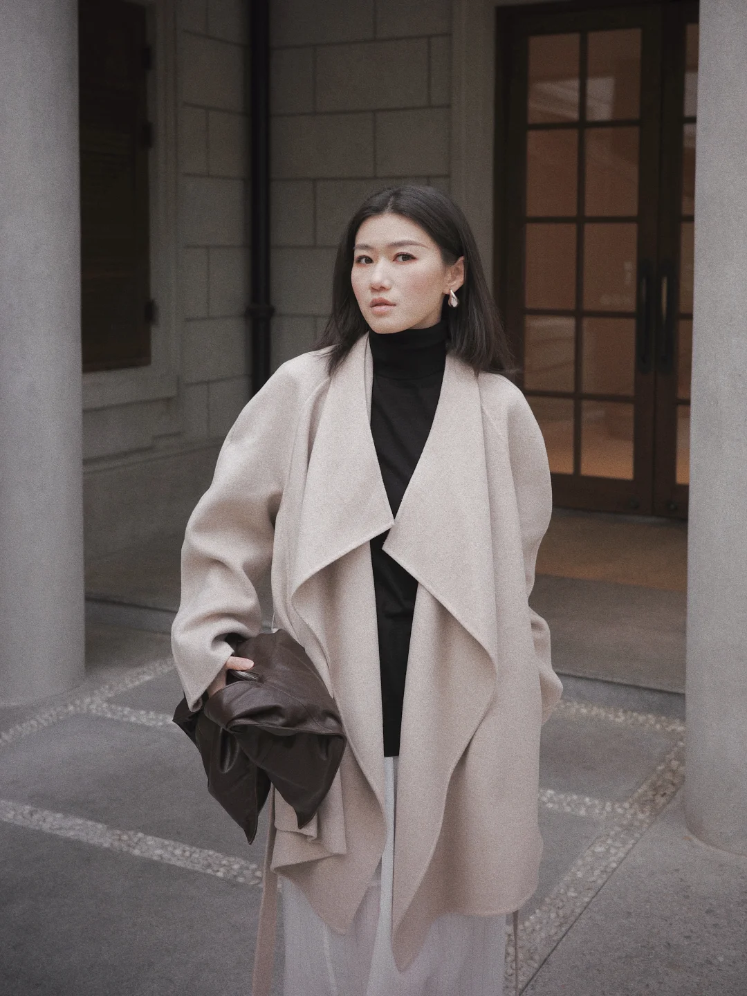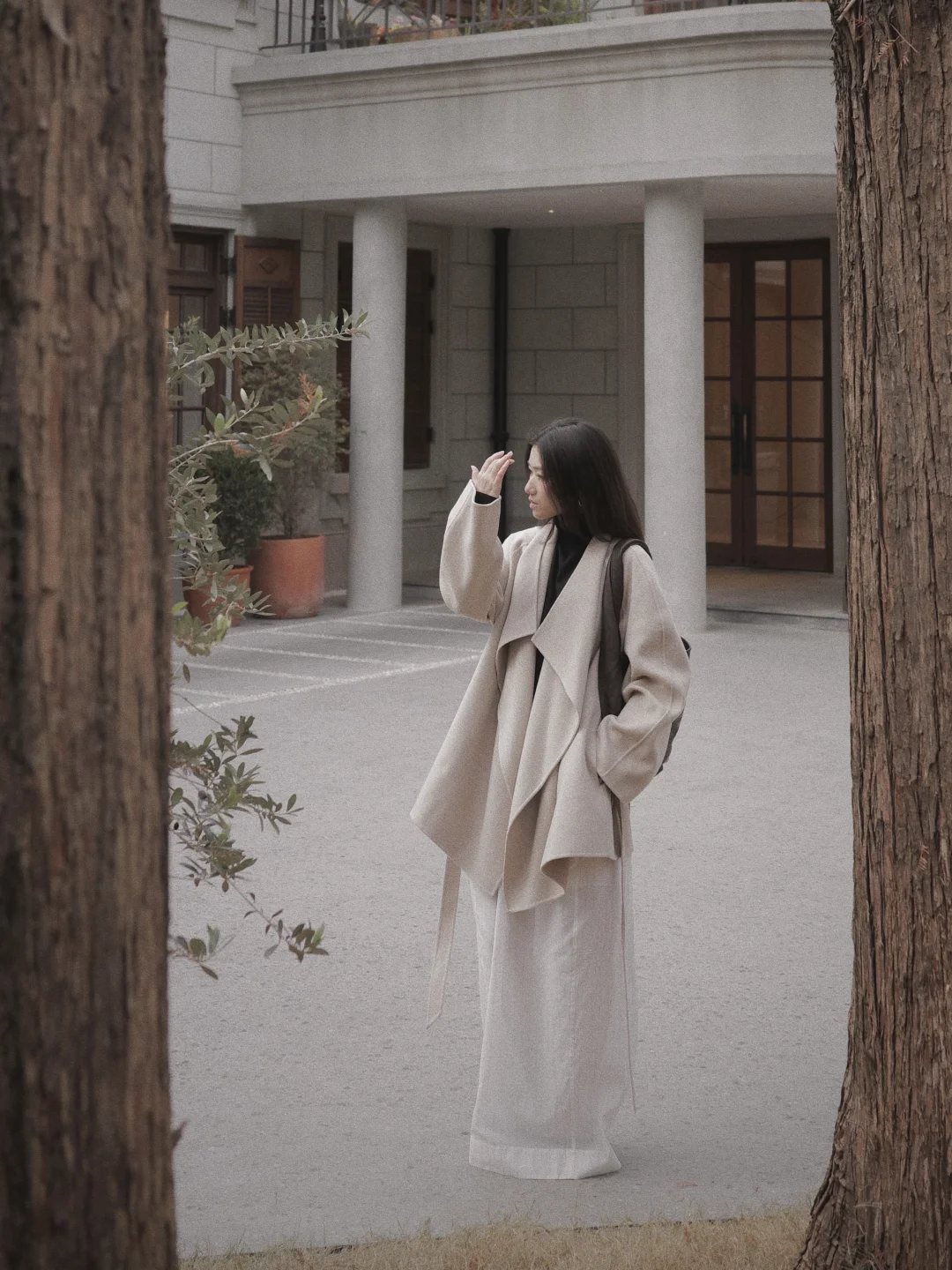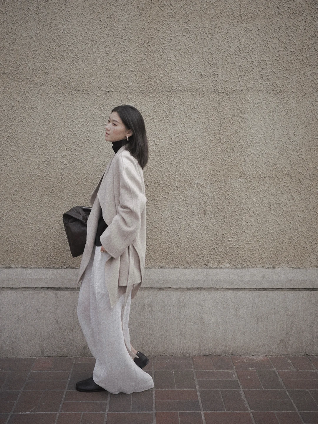 最近尝试了一些新的搭配, 分享两套时髦清冷感OOTD🍂 ✨Look1: 尝试了澳毛大衣和真丝质感半裙的搭配, 很奇妙的氛围感, 有一点清冷,有一点柔美, 又有一些力量感。 ✨Look2: 枪驳领大衣实在太有气场, 搭配了拼接针织半裙, 不规则的半透大裙摆, 增加了一些自由和温柔的vibe。