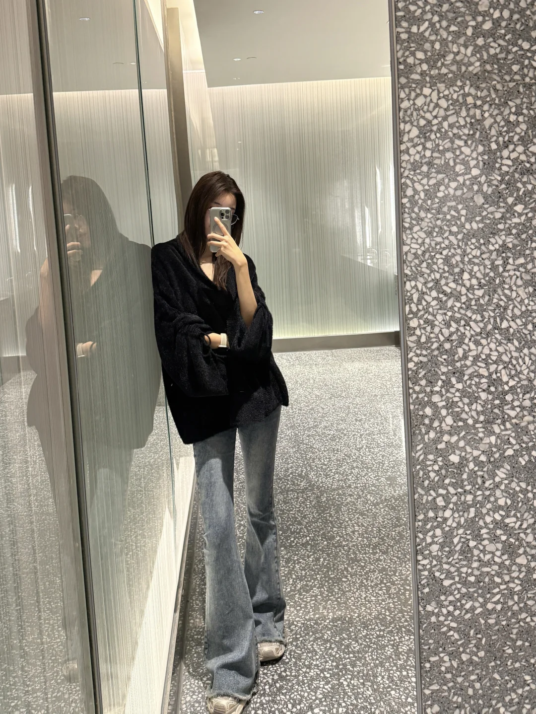 太太太显瘦了! 搭配黑色水貂外套,80左右长度,正好盖住PP和胯 微喇裤脚刚好盖住鞋面,慵懒又显腿直,黑色外套一裹,整个人薄了一圈~ 显瘦效果真的绝!! 小个子高个子都能驾驭,秋冬这么穿又暖又气质🥰 随便穿都能被朋友追着问链接