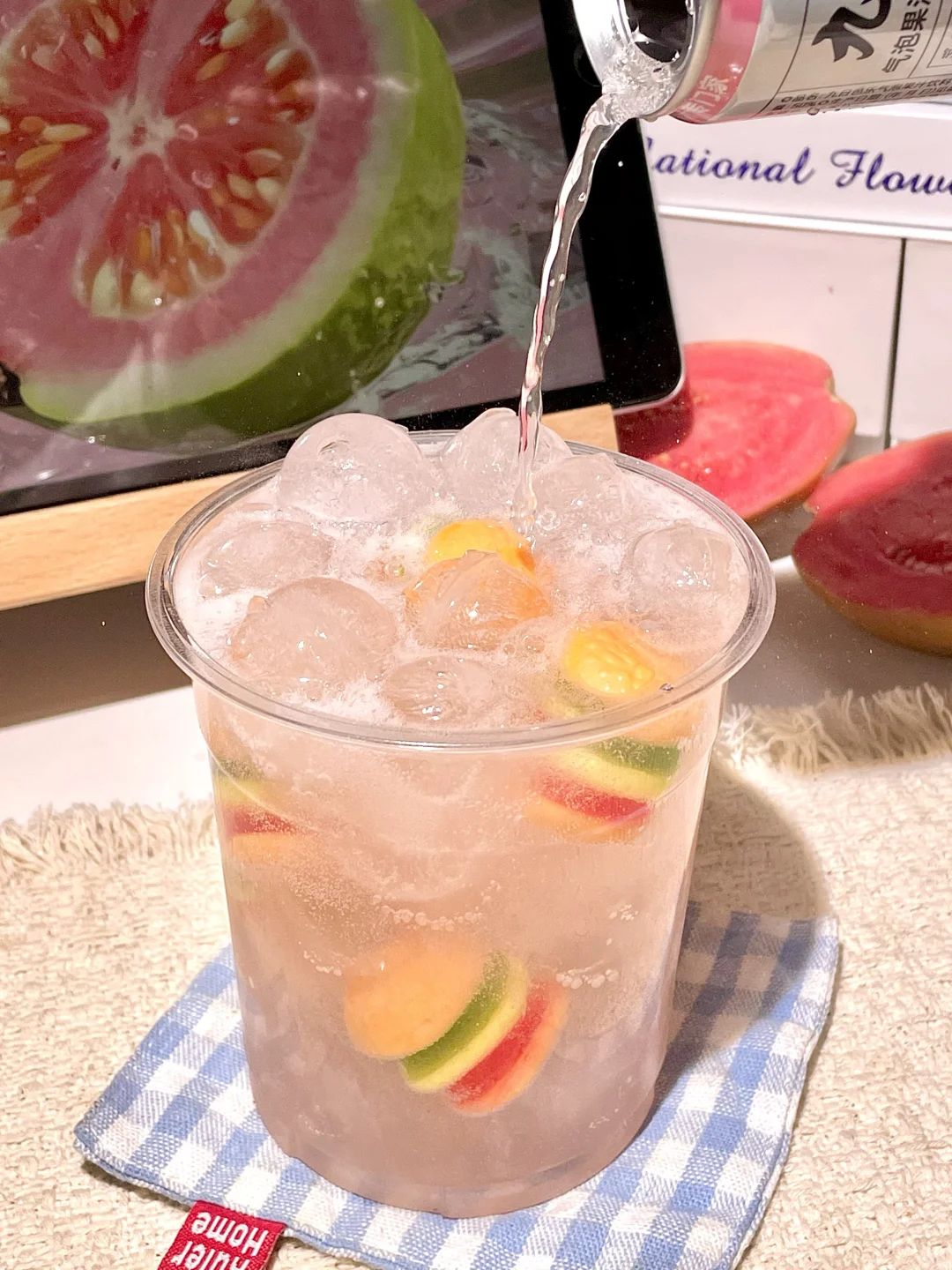 汉堡软糖气泡水!! 别说小朋友看见走不动道,就连我妈喝完都说好看又好喝!! 做法很简单,汉堡糖🍔+冰块🧊倒上芭乐气泡果汁,粉粉的气泡果汁搭配汉堡软糖 一杯惊艳的漂亮饮就做好了!! 好适合年夜饭上🧨和家人一起喝!! 不得不夸夸我用的气泡水,清爽又解腻~ 一打开就是满满的气泡多到扑出来,果味很足!一一半果汁一半气泡水,喝起来口感真的很好! 芭乐味和荔枝两个口味都好喝!日常吃火锅、烧烤吃完来上一口巨过瘾!! 自制饮品饮品日常仙女都在喝什么年夜饭果汁气泡水零食分享