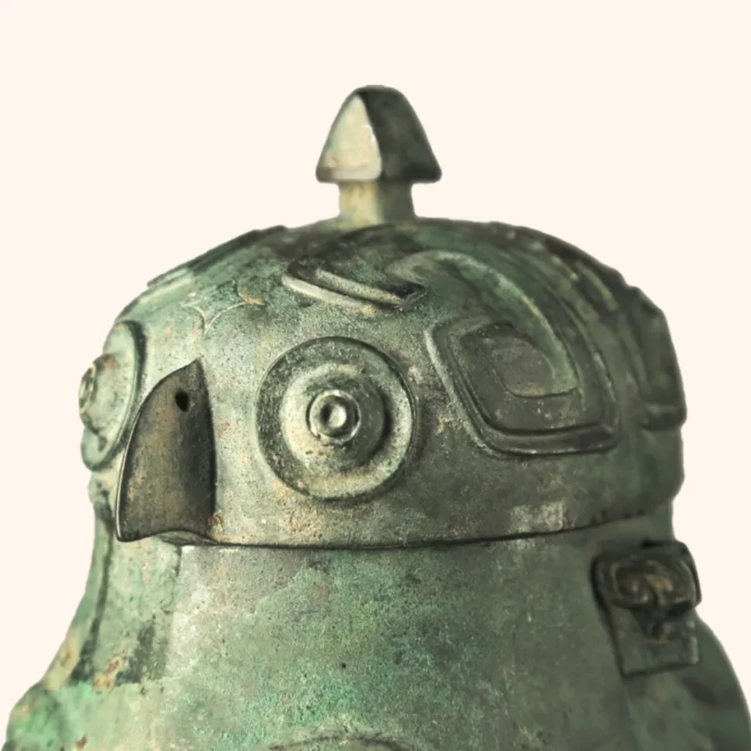鸮就是猫头鹰,古人称之为鸱鸮;卣是专门用来盛放美酒的容器,是商周时期用于祭祀的重要礼器。青铜鸮卣,是3000多年前商代晚期青铜器的精品之作。造型为两只猫头鹰背靠背站立,鸮是古代对猫头鹰一类鸟的统称,而卣是一种酒器,合起来就是“猫头鹰造型的酒器”。由于鸮卣正立面“呆萌”的长相神似游戏“愤怒的小鸟”里的IP形象,鸮卣一度成为山西博物院网红文物,被网友戏称为最萌青铜器。