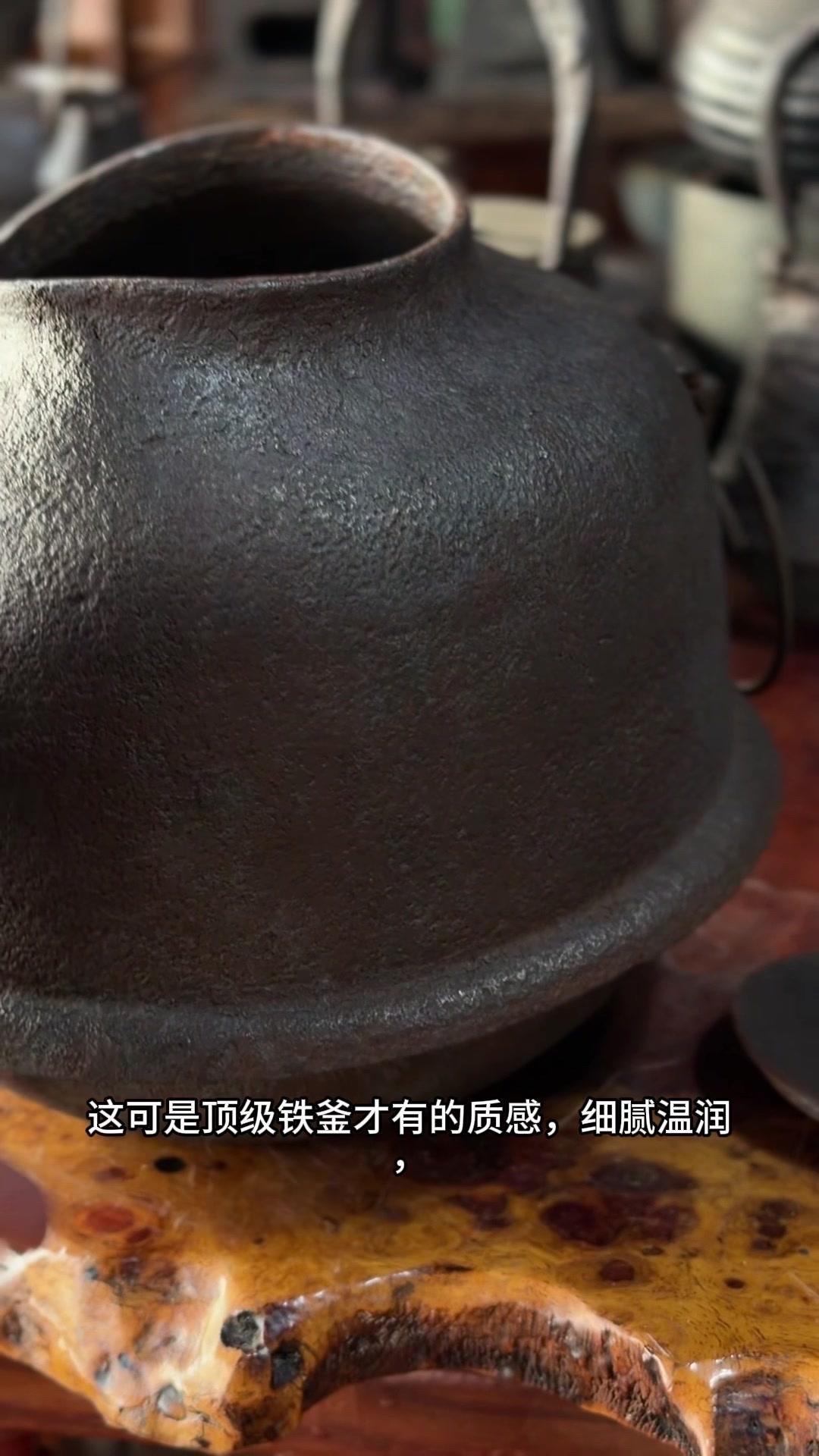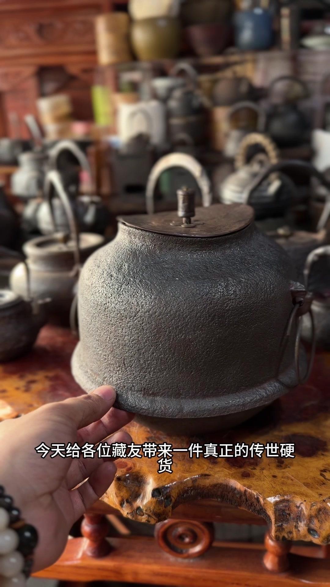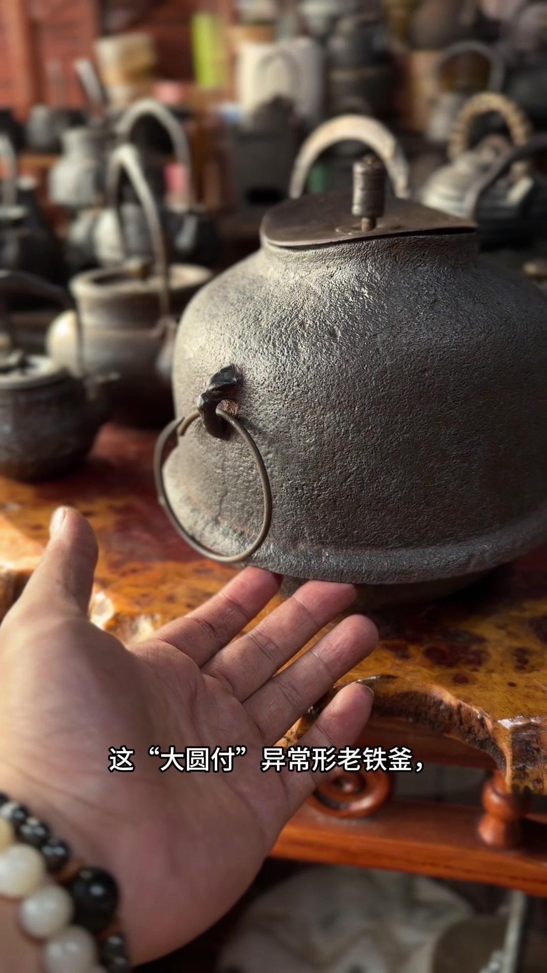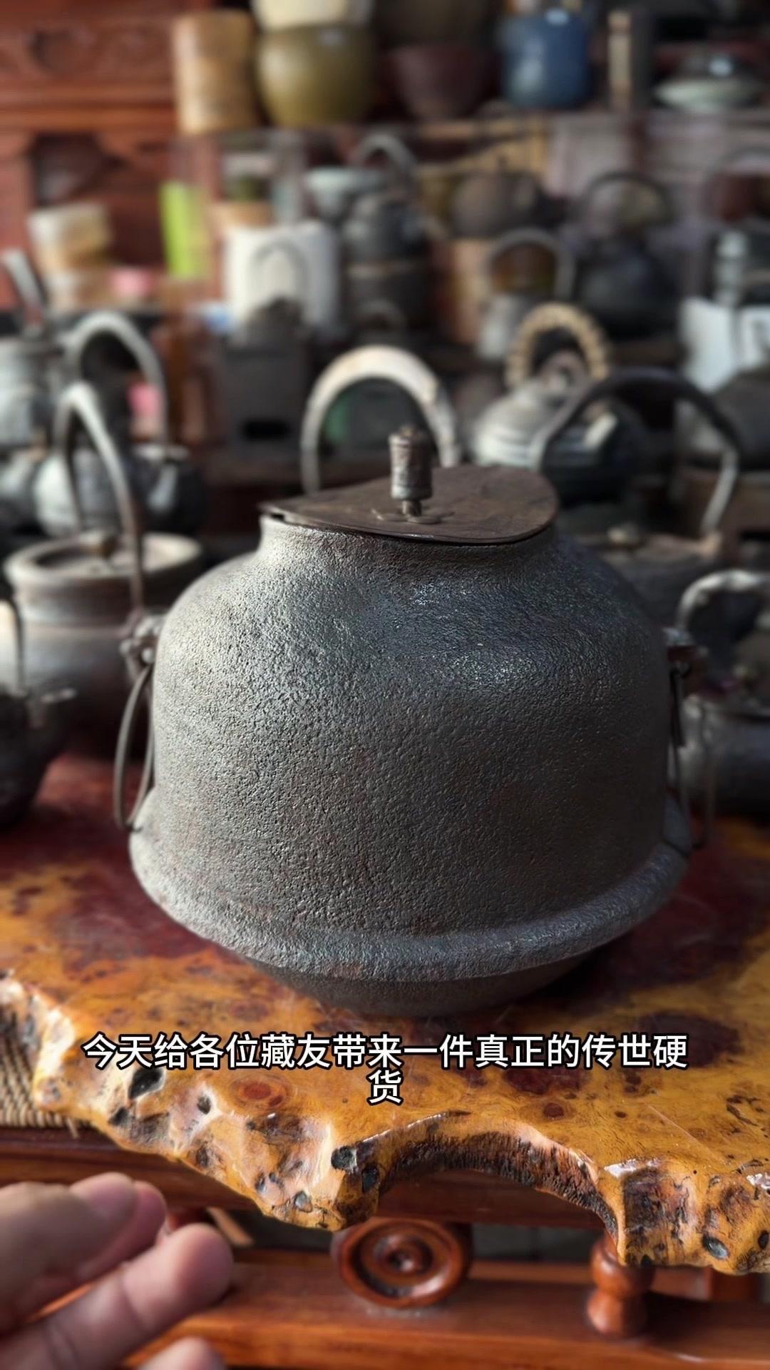 日本顶级铁釜长这样?作为资深藏友,今天必须给你们看件真正的传世硬货——明治时期京都五大釜师之一高木治良兵卫的作品,这“大圆付”异常形老铁釜,绝对是可遇不可求的顶级精品! 先说说高木家的分量。懂日本铁釜的藏友都知道,能被称作“釜座”的家族全日本只剩两家,高木家就是其中之一,另一家还是他的本家大西家。这传承渊源有多深厚不用我多言。高木家始于江户末期,承袭大西家的顶级铸造技艺,一代兵卫自立门户后,这名号传到现在六代已经近两百年,每一代的作品都是藏家追捧的珍品,而这一件,更是他家风格的极致体现。 咱们先看器型,这“大圆付”的异常形设计,真的是世界上独一无二,绝对找不到第二个同款!釜身是特殊的袋型扁塌设计,自带寒雉大圆付的经典韵味,线条流畅又透着一股古朴大气。最惊艳的是这个盖子,完全是配合釜口的异形一片打造,还做了锡焊包边,那弧度就像一轮满月,看着简单,实则耗费的精力难以想象——异形盖对贴合度和弧度的拿捏,没有几十年的功底根本做不出来;这就是大师手笔的细节。 再看材质和工艺,釜身满布梨皮针眼,这可是顶级铁釜才有的质感,细腻温润,摸上去都能感受到铁质的精良。连盖子总高20厘米,满水容量大概3800cc,现在已经清理得干干净净,完全可以直接使用,实用性和收藏性兼备。 要知道,高木治良兵卫的作品本身就稀缺,这种异常形的特殊款更是凤毛麟角。作为京都铁器世家的传世之作,既承袭了本家长辈的技艺精髓,又有自家独有的风格烙印,不管是从工艺、传承还是稀缺度来看,都是无可替代の顶级藏品;遇到真的是藏友的缘分,懂的朋友自然明白它的收藏价值有多高。