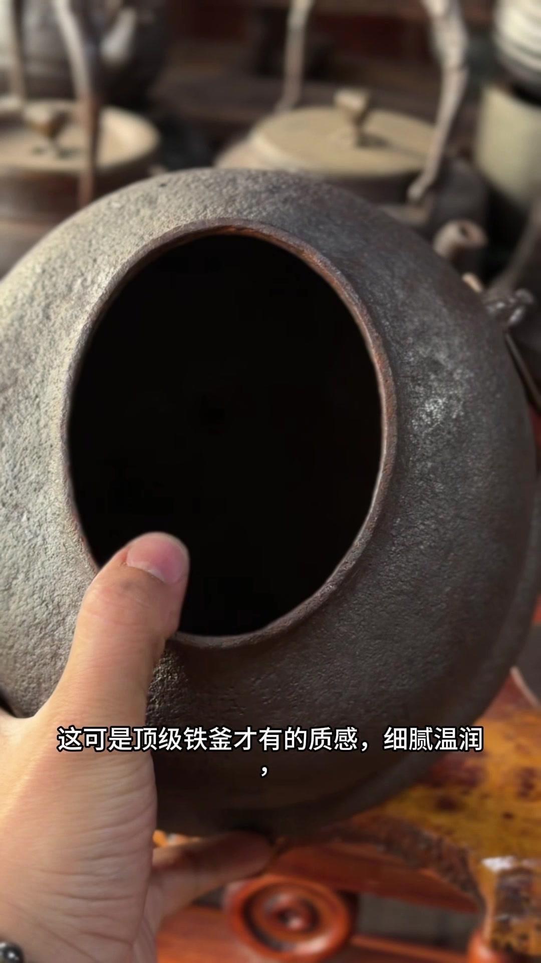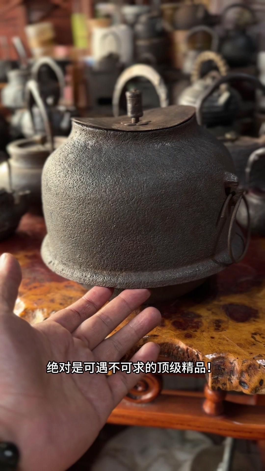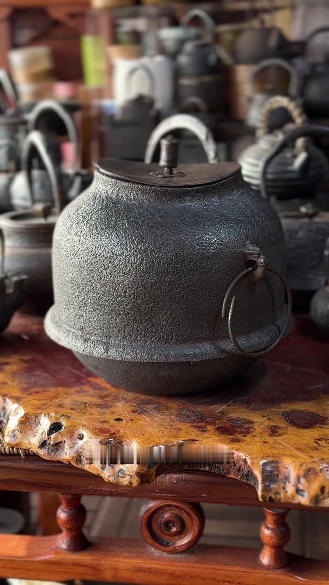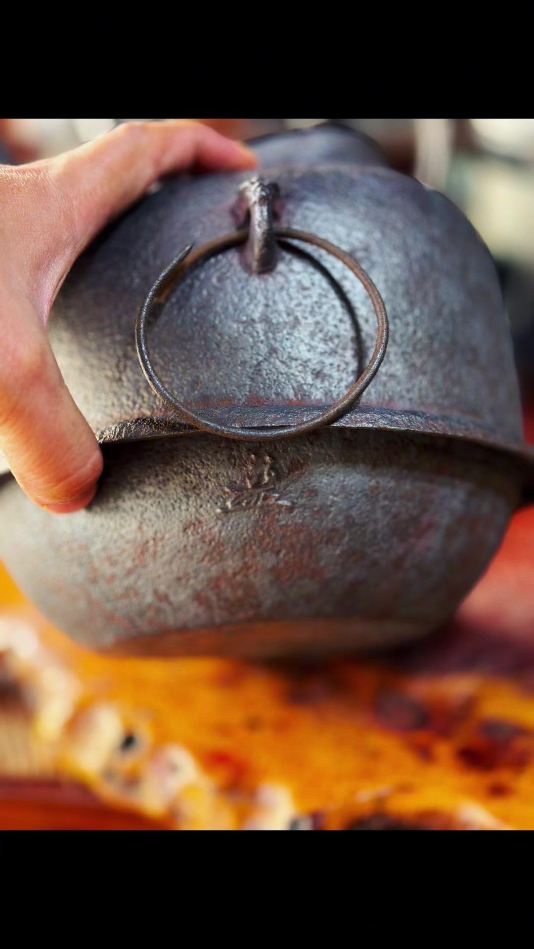 日本顶级铁釜长这样?作为资深藏友,今天必须给你们看件真正的传世硬货——明治时期京都五大釜师之一高木治良兵卫的作品,这“大圆付”异常形老铁釜,绝对是可遇不可求的顶级精品! 先说说高木家的分量。懂日本铁釜的藏友都知道,能被称作“釜座”的家族全日本只剩两家,高木家就是其中之一,另一家还是他的本家大西家。这传承渊源有多深厚不用我多言。高木家始于江户末期,承袭大西家的顶级铸造技艺,一代兵卫自立门户后,这名号传到现在六代已经近两百年,每一代的作品都是藏家追捧的珍品,而这一件,更是他家风格的极致体现。 咱们先看器型,这“大圆付”的异常形设计,真的是世界上独一无二,绝对找不到第二个同款!釜身是特殊的袋型扁塌设计,自带寒雉大圆付的经典韵味,线条流畅又透着一股古朴大气。最惊艳的是这个盖子,完全是配合釜口的异形一片打造,还做了锡焊包边,那弧度就像一轮满月,看着简单,实则耗费的精力难以想象——异形盖对贴合度和弧度的拿捏,没有几十年的功底根本做不出来;这就是大师手笔的细节。 再看材质和工艺,釜身满布梨皮针眼,这可是顶级铁釜才有的质感,细腻温润,摸上去都能感受到铁质的精良。连盖子总高20厘米,满水容量大概3800cc,现在已经清理得干干净净,完全可以直接使用,实用性和收藏性兼备。 要知道,高木治良兵卫的作品本身就稀缺,这种异常形的特殊款更是凤毛麟角。作为京都铁器世家的传世之作,既承袭了本家长辈的技艺精髓,又有自家独有的风格烙印,不管是从工艺、传承还是稀缺度来看,都是无可替代の顶级藏品;遇到真的是藏友的缘分,懂的朋友自然明白它的收藏价值有多高。
