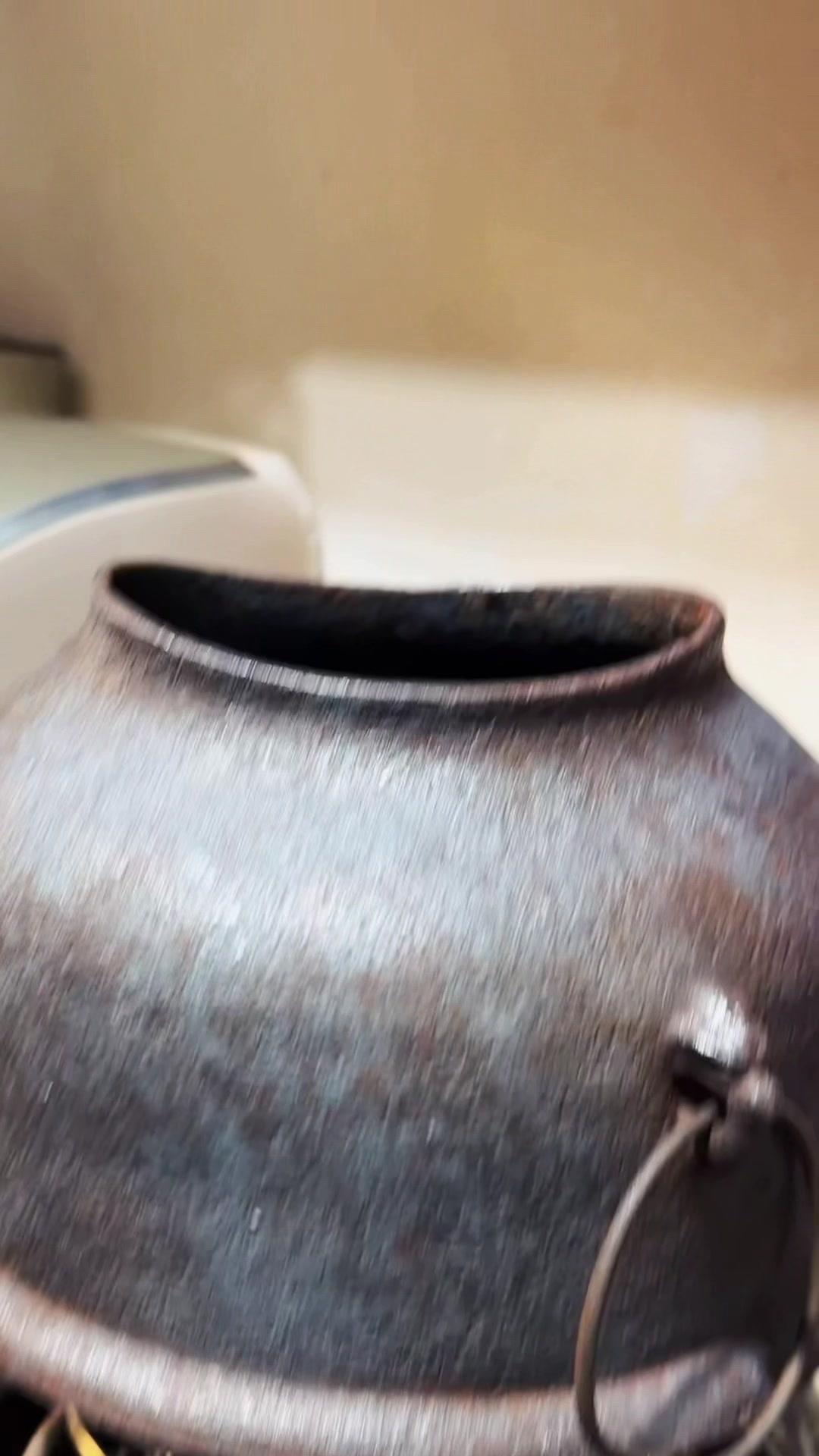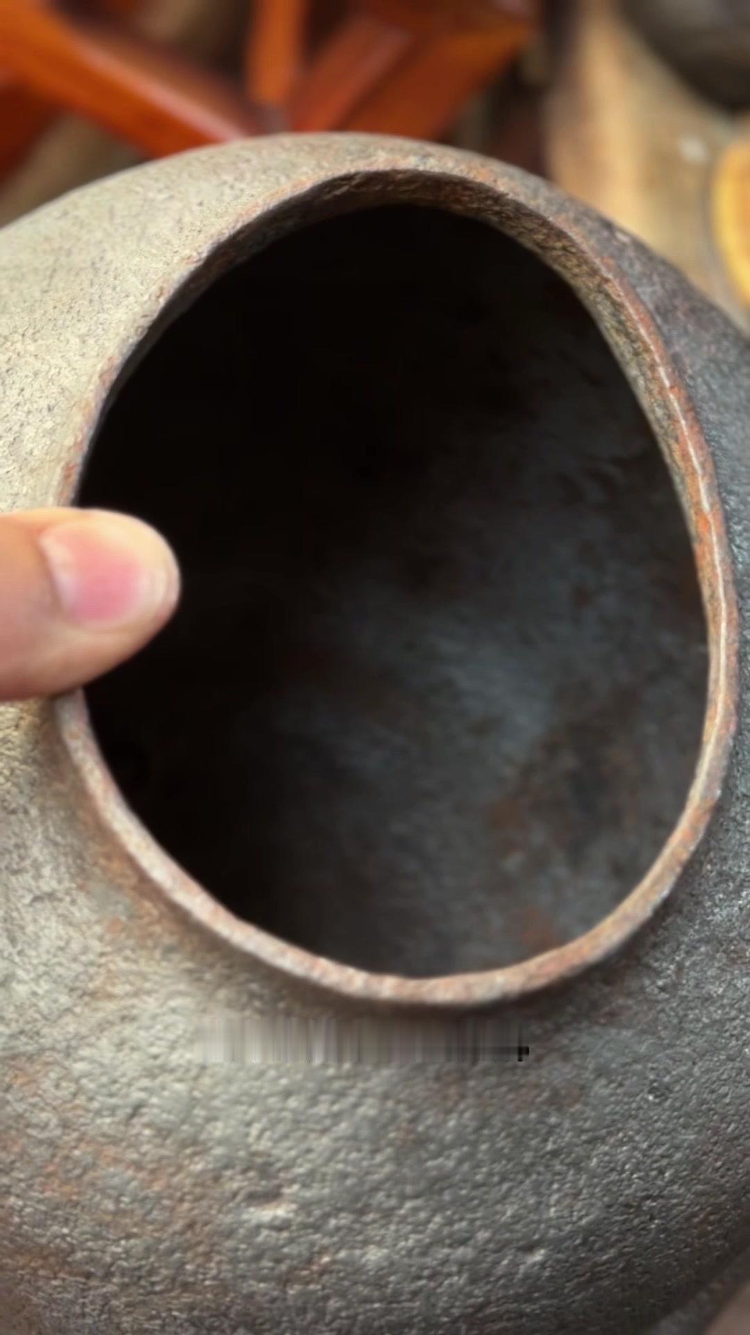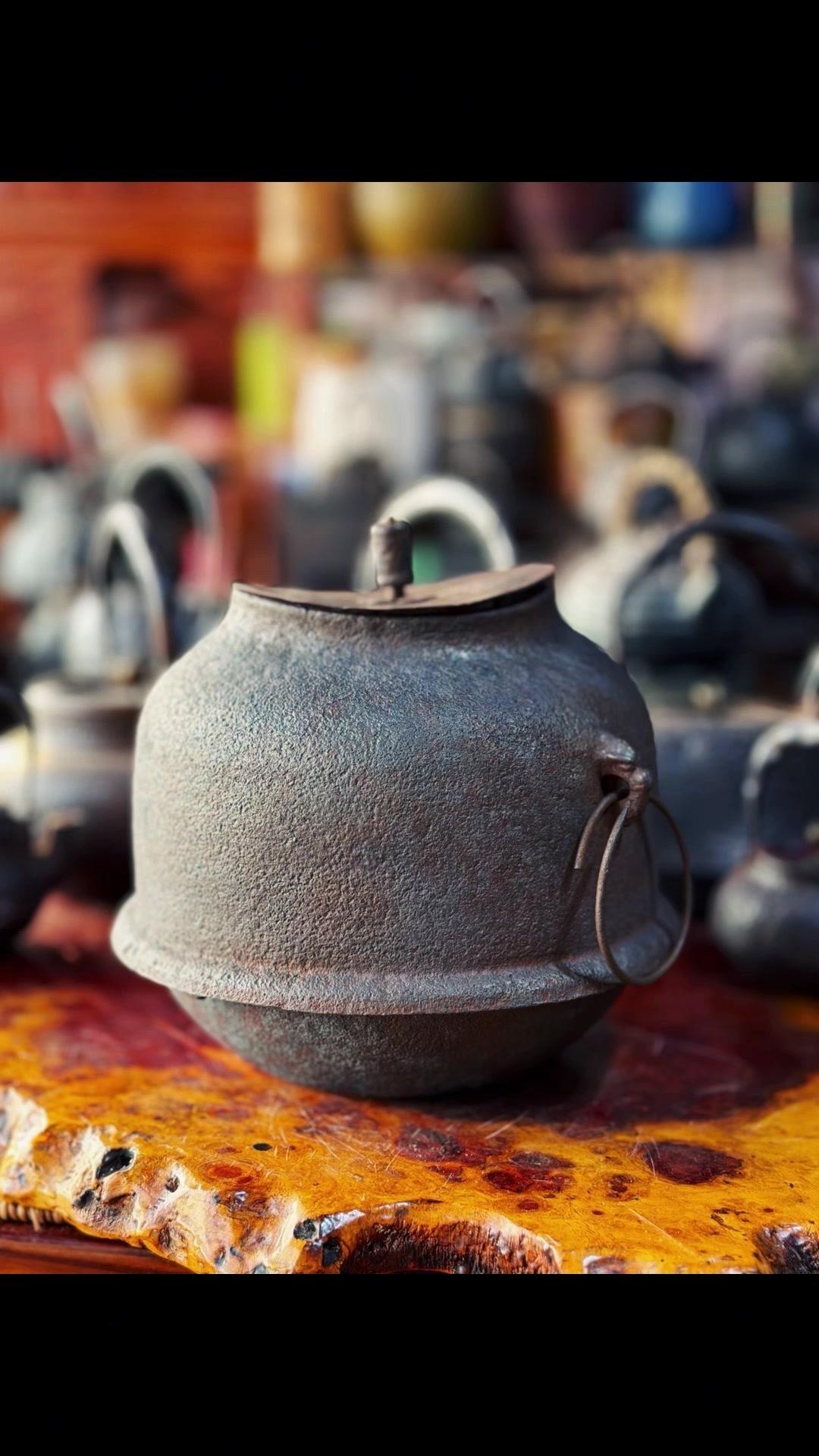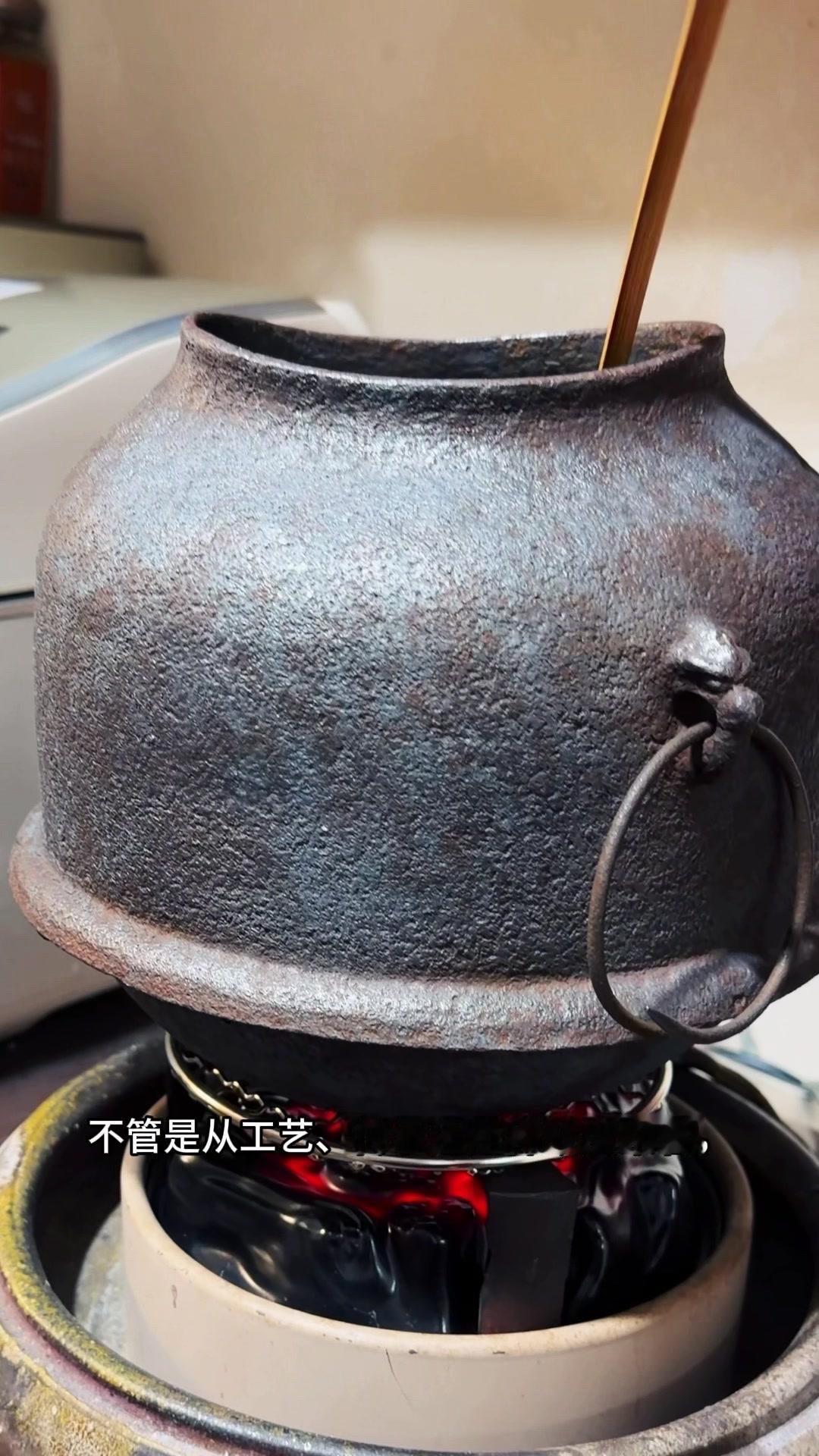 日本顶级铁釜长这样?作为资深藏友,今天必须给你们看件真正的传世硬货——明治时期京都五大釜师之一高木治良兵卫的作品,这“大圆付”异常形老铁釜,绝对是可遇不可求的顶级精品! 先说说高木家的分量。懂日本铁釜的藏友都知道,能被称作“釜座”的家族全日本只剩两家,高木家就是其中之一,另一家还是他的本家大西家。这传承渊源有多深厚不用我多言。高木家始于江户末期,承袭大西家的顶级铸造技艺,一代兵卫自立门户后,这名号传到现在六代已经近两百年,每一代的作品都是藏家追捧的珍品,而这一件,更是他家风格的极致体现。 咱们先看器型,这“大圆付”的异常形设计,真的是世界上独一无二,绝对找不到第二个同款!釜身是特殊的袋型扁塌设计,自带寒雉大圆付的经典韵味,线条流畅又透着一股古朴大气。最惊艳的是这个盖子,完全是配合釜口的异形一片打造,还做了锡焊包边,那弧度就像一轮满月,看着简单,实则耗费的精力难以想象——异形盖对贴合度和弧度的拿捏,没有几十年的功底根本做不出来;这就是大师手笔的细节。 再看材质和工艺,釜身满布梨皮针眼,这可是顶级铁釜才有的质感,细腻温润,摸上去都能感受到铁质的精良。连盖子总高20厘米,满水容量大概3800cc,现在已经清理得干干净净,完全可以直接使用,实用性和收藏性兼备。 要知道,高木治良兵卫的作品本身就稀缺,这种异常形的特殊款更是凤毛麟角。作为京都铁器世家的传世之作,既承袭了本家长辈的技艺精髓,又有自家独有的风格烙印,不管是从工艺、传承还是稀缺度来看,都是无可替代の顶级藏品;遇到真的是藏友的缘分,懂的朋友自然明白它的收藏价值有多高。
