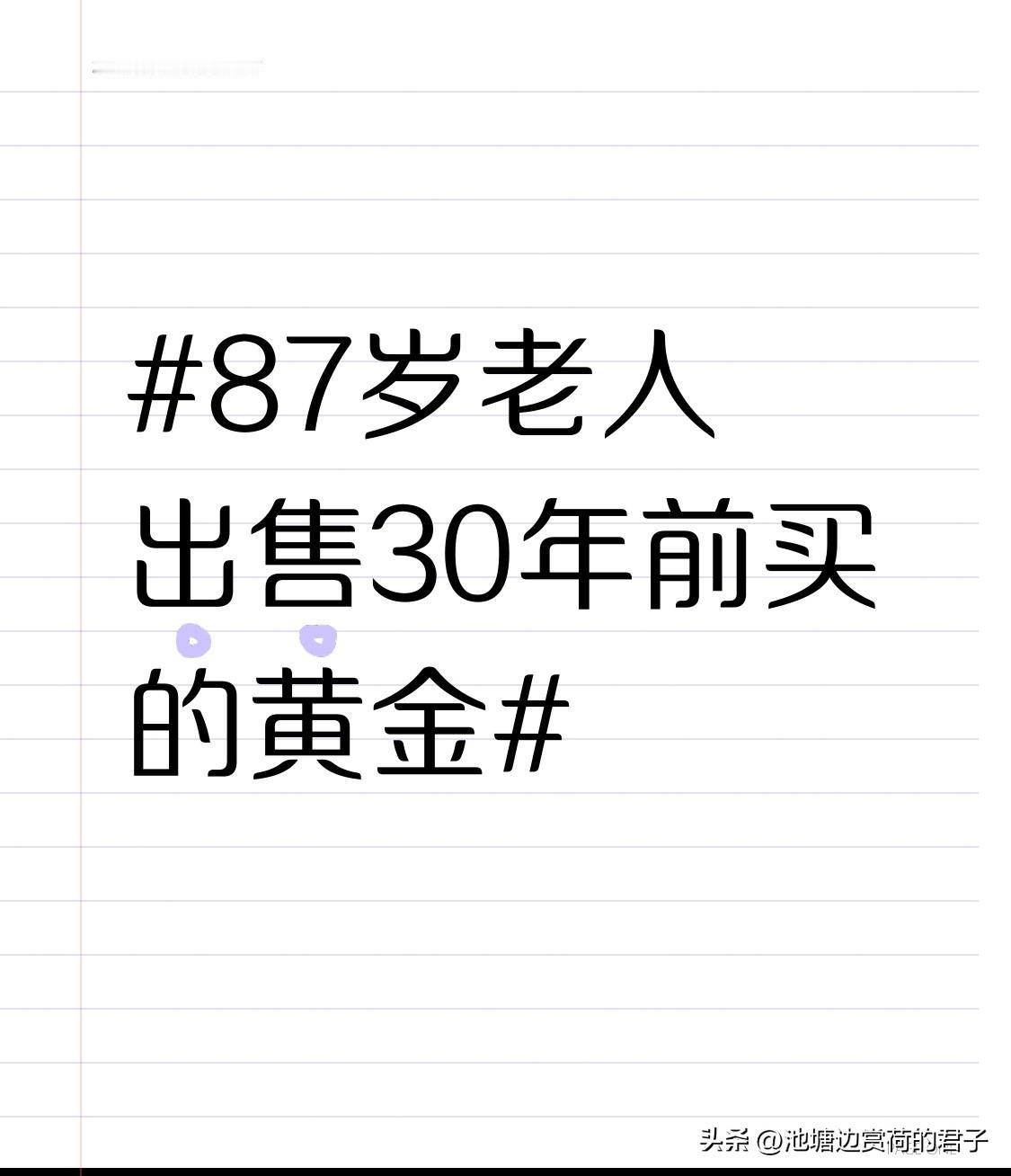 87岁老人出售30年前买的黄金 87岁癌症晚期的王奶奶出售了30年前丈夫买的黄金,太让人动容。30年前,金价每克才100元,现在回收价达到1020元/克。这黄金可不只是物件,是丈夫留给她唯一的念想。 王奶奶却选择把这念想换成善款资助公益事业。报道里看到她不断亲吻首饰,那种不舍与坚定令人心疼。网友说得没错,这就是世间最好的爱情。王奶奶用行动诠释了爱能超越生死,从夫妻之情延伸到对社会的大爱,这举动比黄金更珍贵。