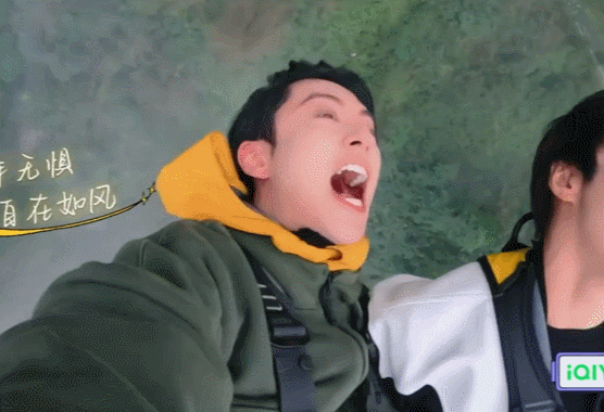王鹤棣我好像看见你扁桃体了这蹦极看来是真的是给我们王鹤棣哥给玩爽了啊!已经失去表
