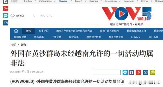 越南外交部发言人称外国在西沙群岛未经允许的活动非法2026年1月9日越南外交部发言人声称,外国在黄沙群岛(我国西沙群岛)未经越南允许的活动非法,还称越南对该群岛有主权:西沙群岛是我国固有领土,有历史法理依据,我国在西沙的建设是正当行为,越南言论是对我国主权的挑衅。 BO NCOAIGIAO NUOC CHXHCYUETNAM